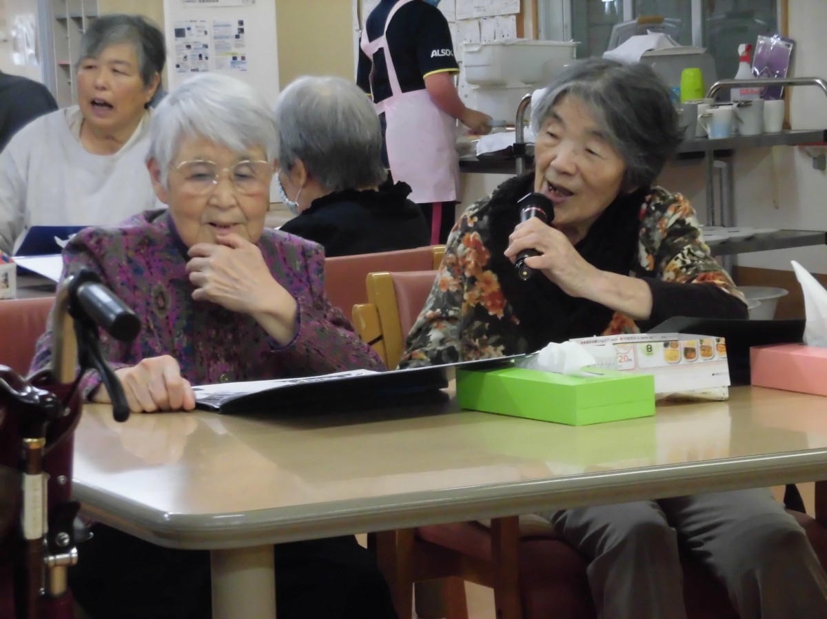 今回のカラオケは順番通りにマイクが回ってくることになっていたので、そこで歌声をしています。また、2人1組で唄うこともあるのでいつも以上に歌声がデイに響き渡りました!(^^)!