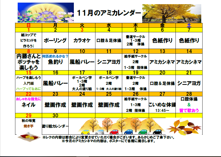 11月のアミカレンダー
