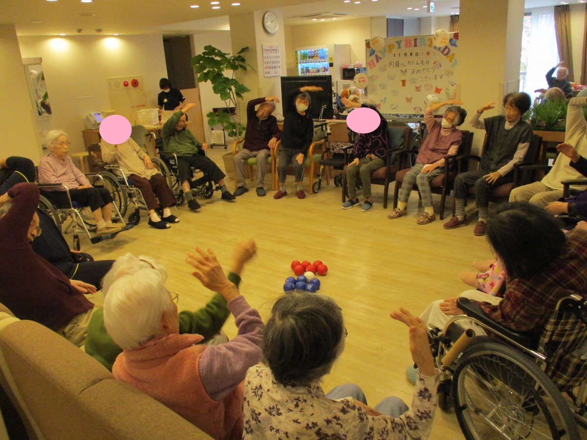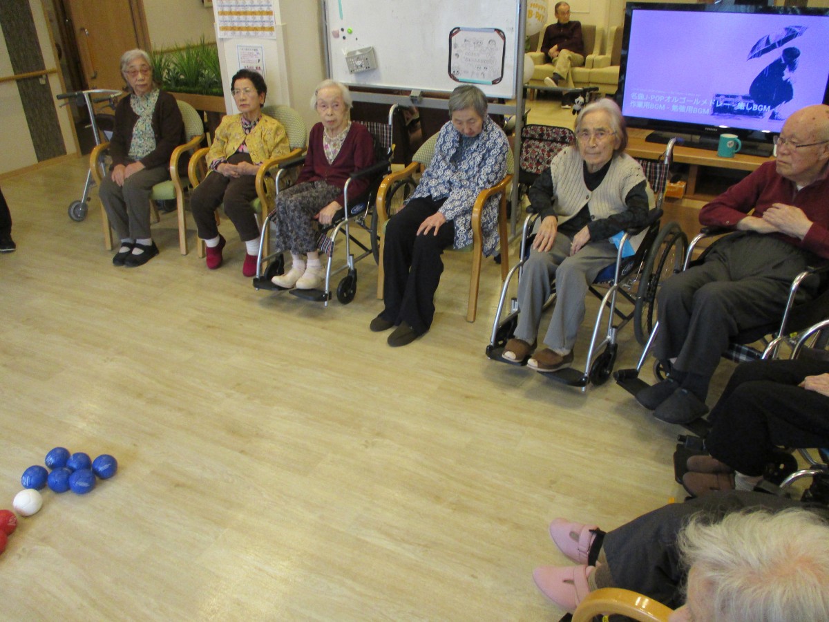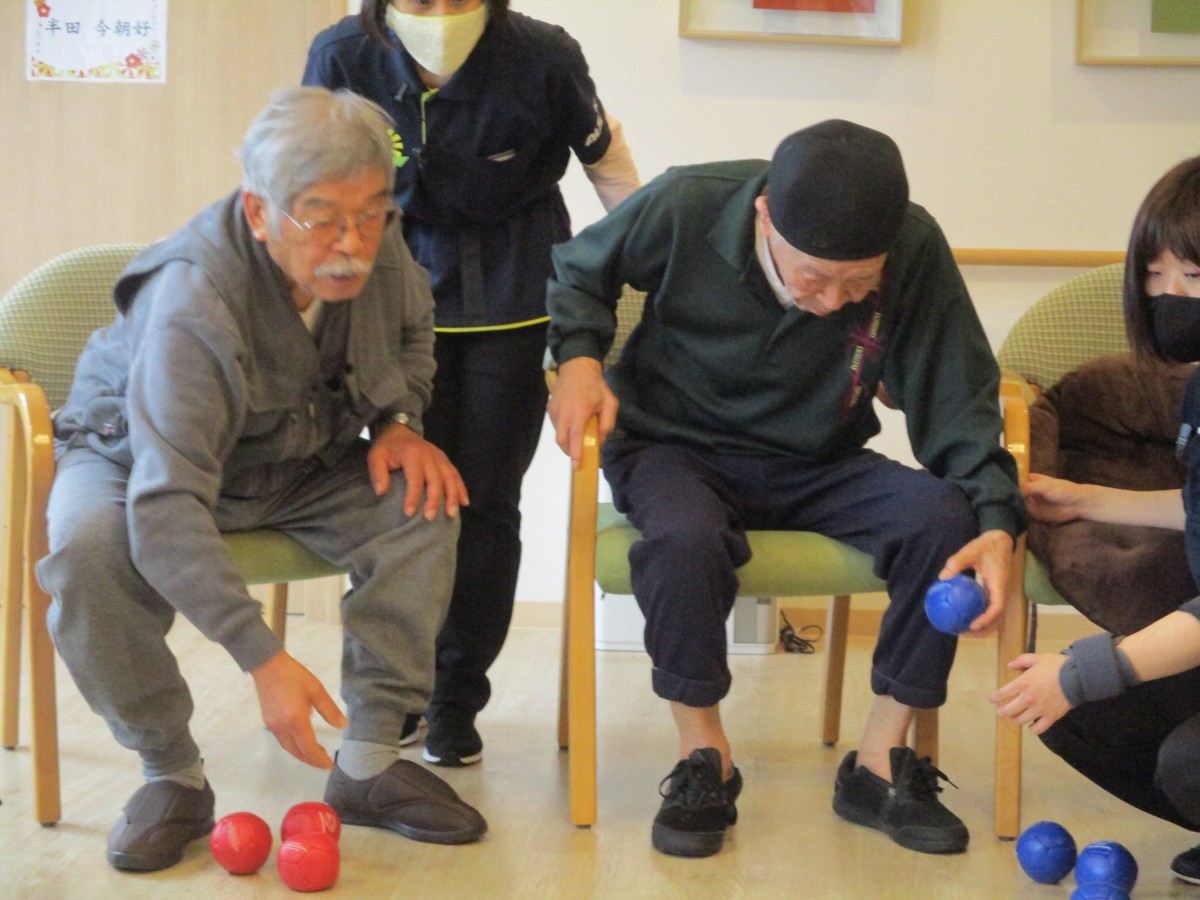 いつも来てくれるALSOK介護の内藤さんが本日も来てくれました(すっかりボッチャの人です)