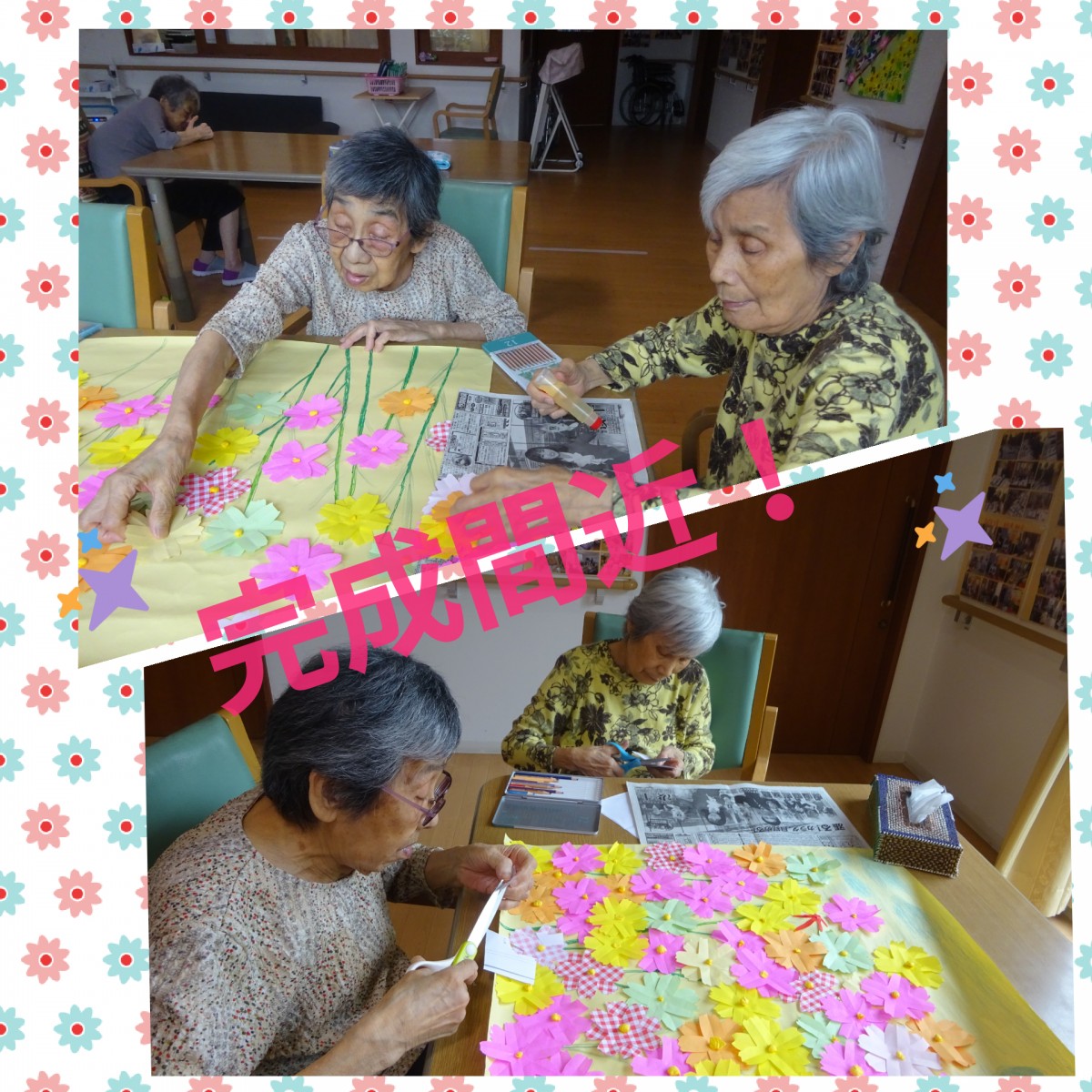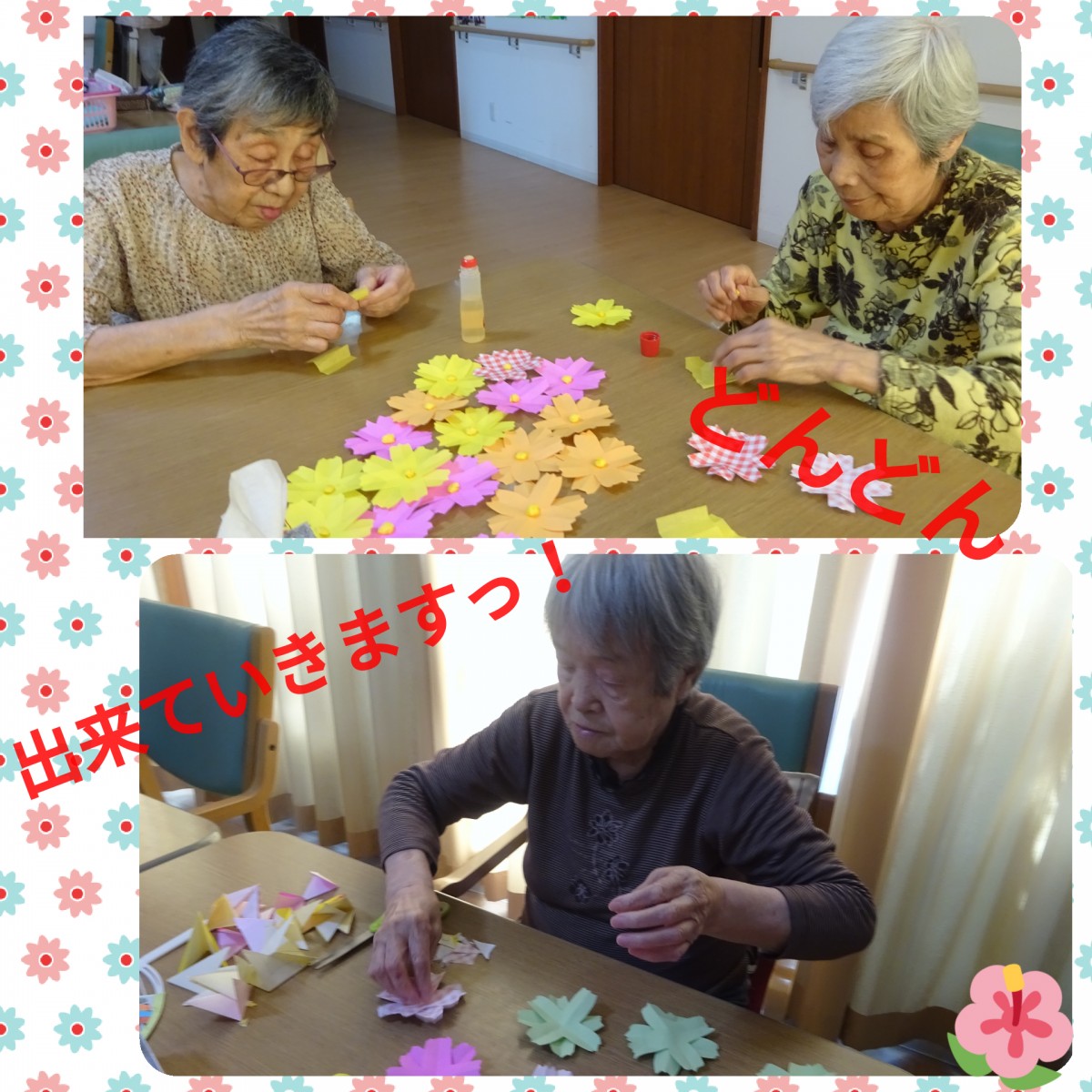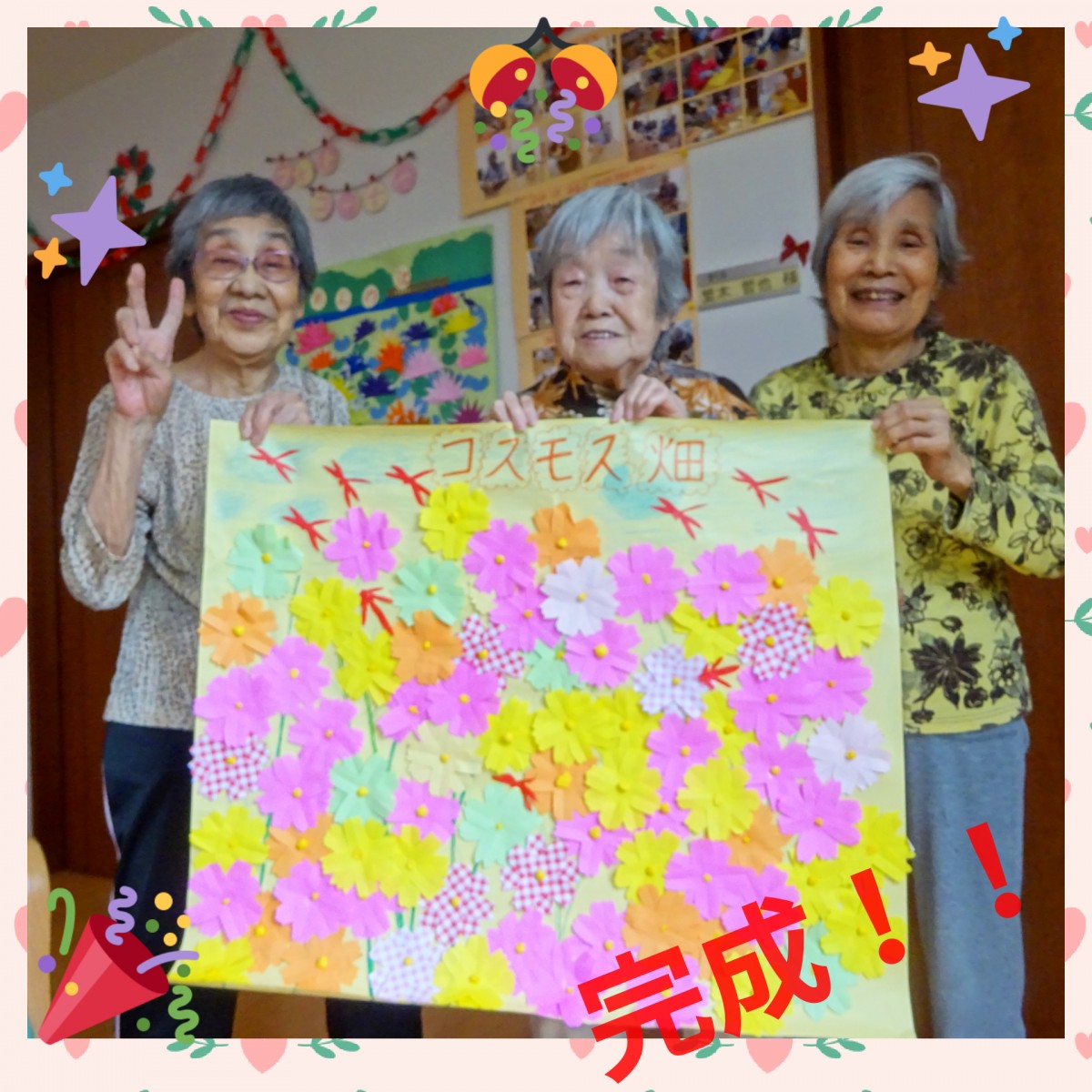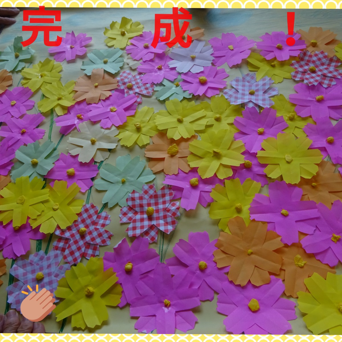 作ったコスモスをどんどん貼っていきます!!
