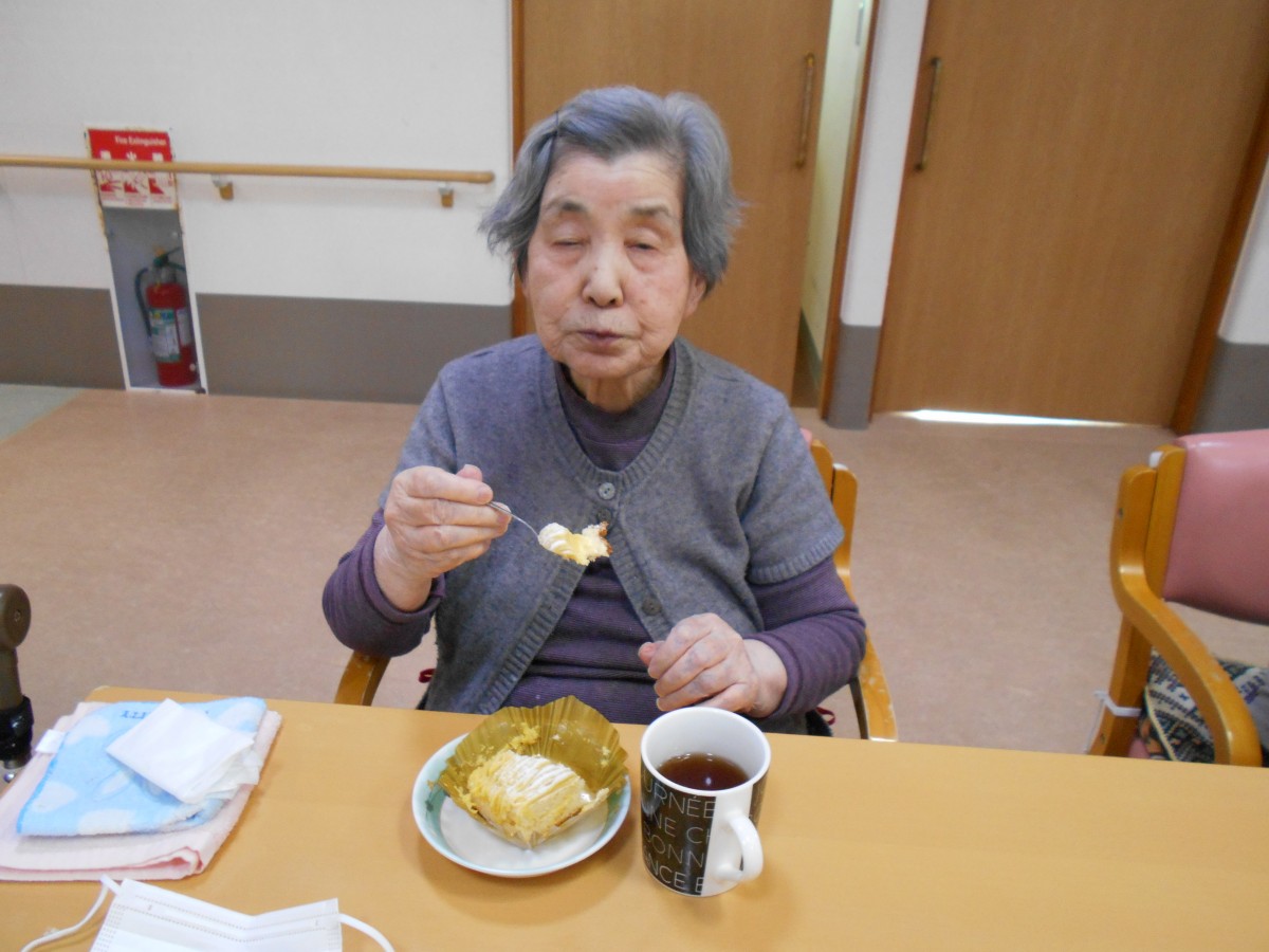 職員がプレゼントをお渡しし、その後に皆様でおやつを召し上がられました。