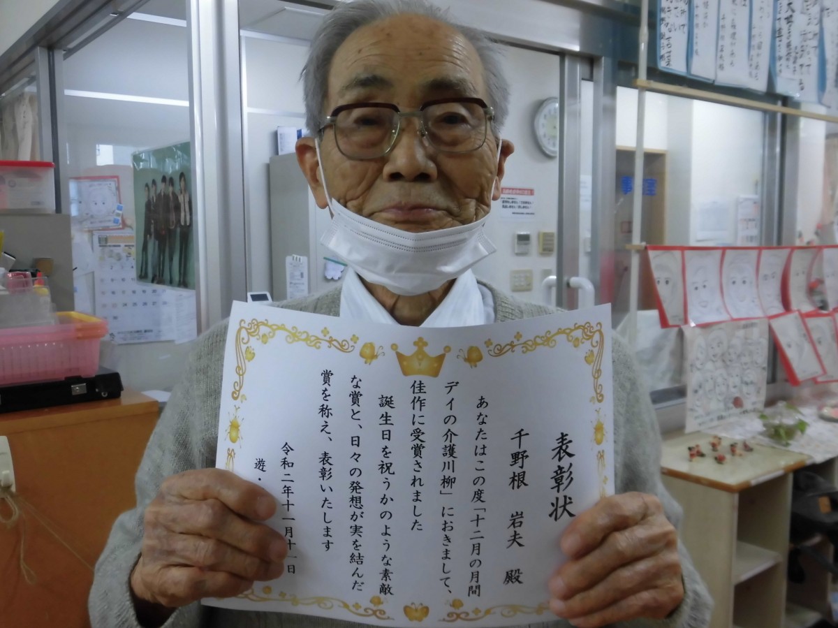 今月もちゅーもーく!介護川柳結果発表とお祝い会