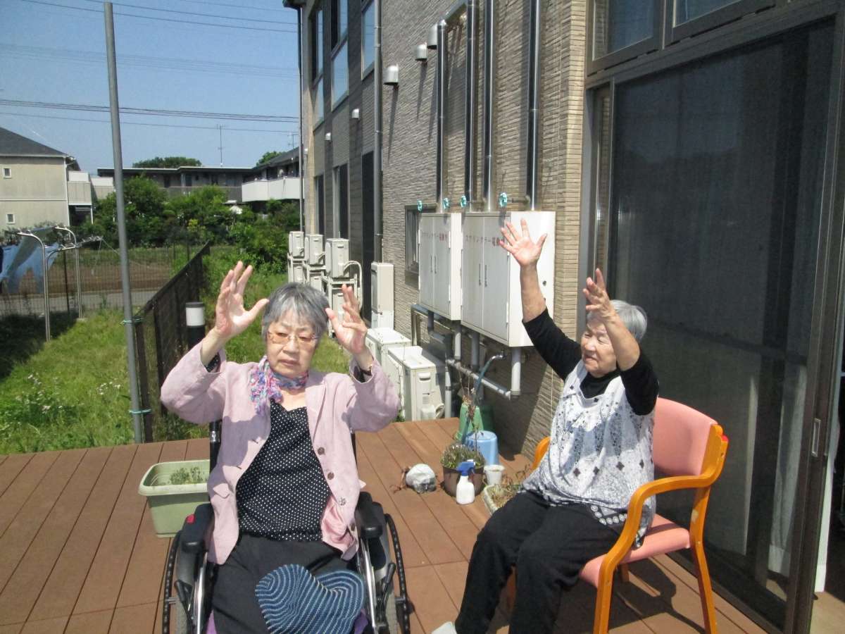 お日様の下、元気良く体操したり、仲良く楽しく風船バレー ・・・ と