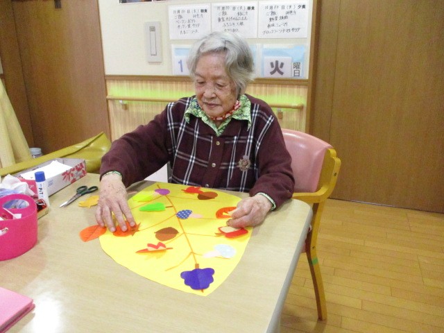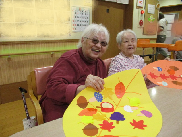 GH上瀬谷も秋らしく貼り絵を変えようという事で、、、、みんなで作成致しました(≧◇≦)
