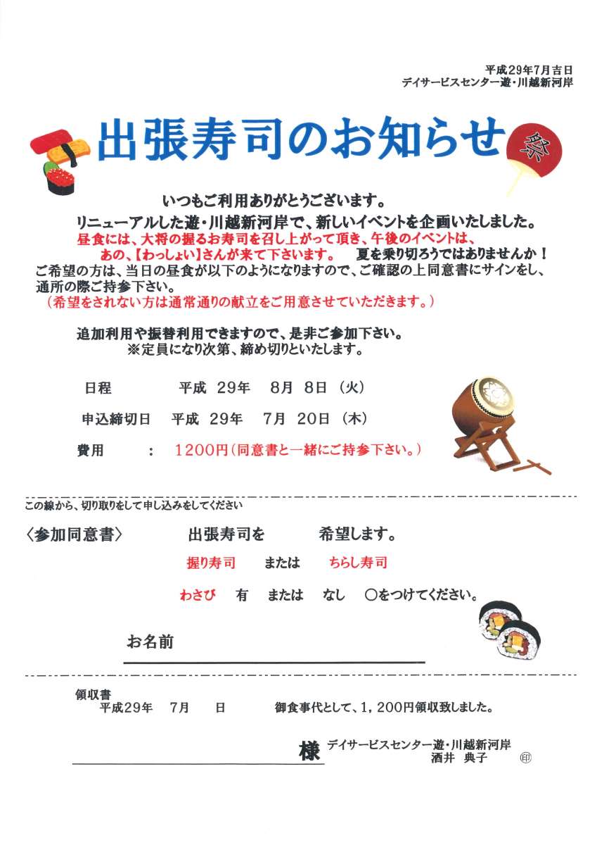 8/8 出張寿司のお知らせ