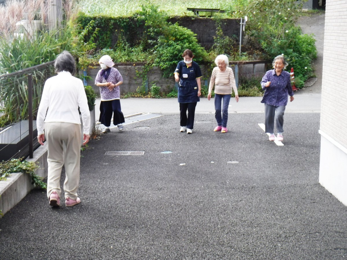 そして、お天気の良い日には、外に出て体操や、歩行訓練を楽しんで頂いています^^