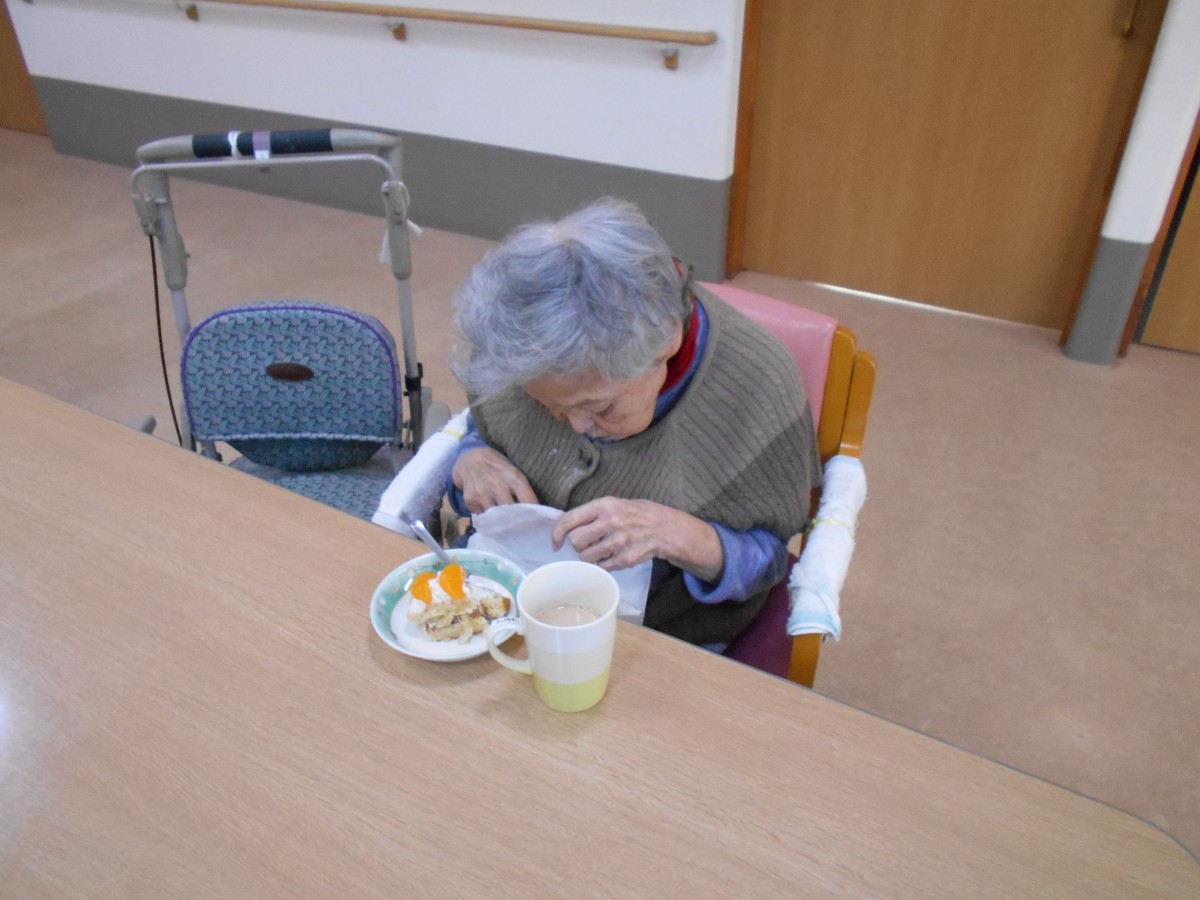 職員がプレゼントをお渡しした後、皆様でおやつを召し上がられました。