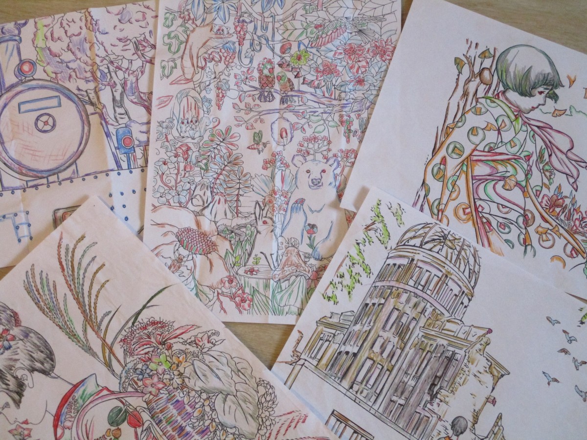 塗り方に独特のセンスがあり、色合いも良く、塗り絵がアート作品に変身します
