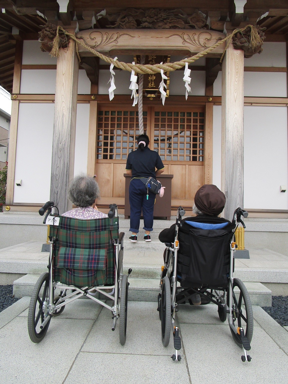 当施設は住宅街の中に建っており近くには川や神社、スーパーなど