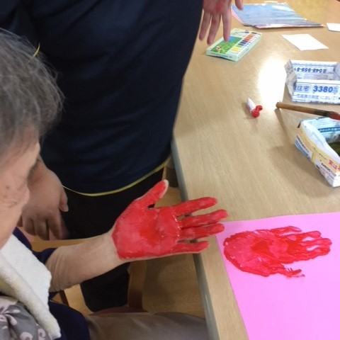 先日ご利用者様の手と足に絵の具ペタペタ塗り