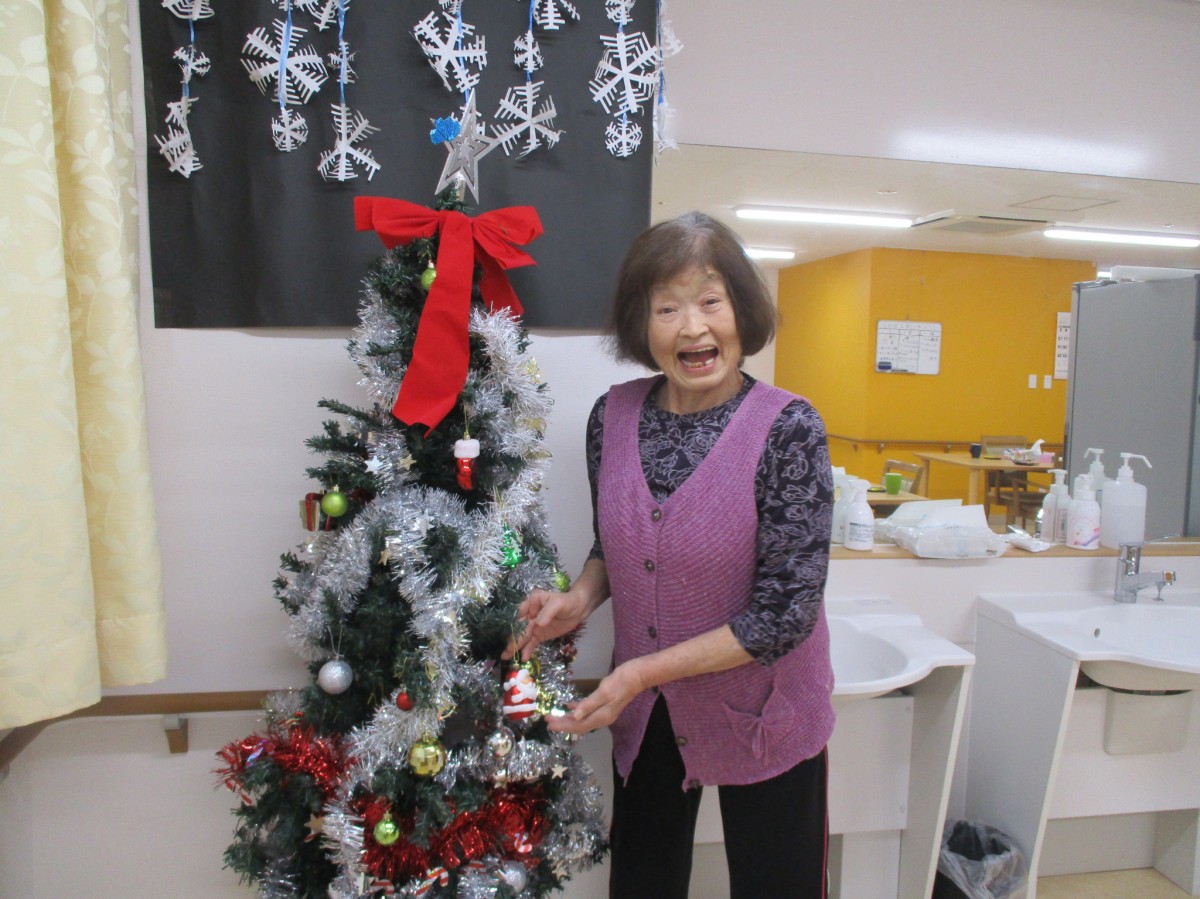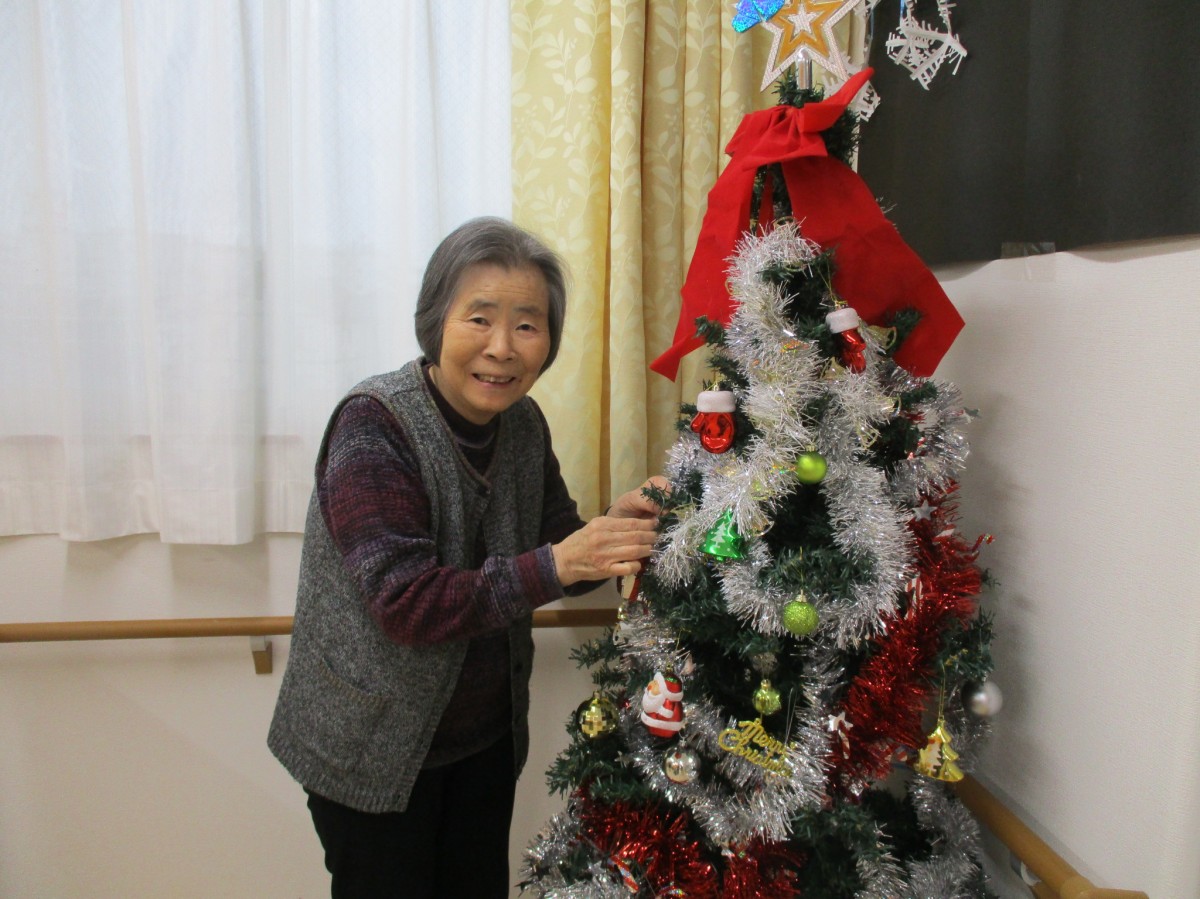 12月2日、みんなの家・久喜のあるフロアではクリスマスツリーの飾り付けを行いました。 利用者の皆様にも手伝って頂きました。