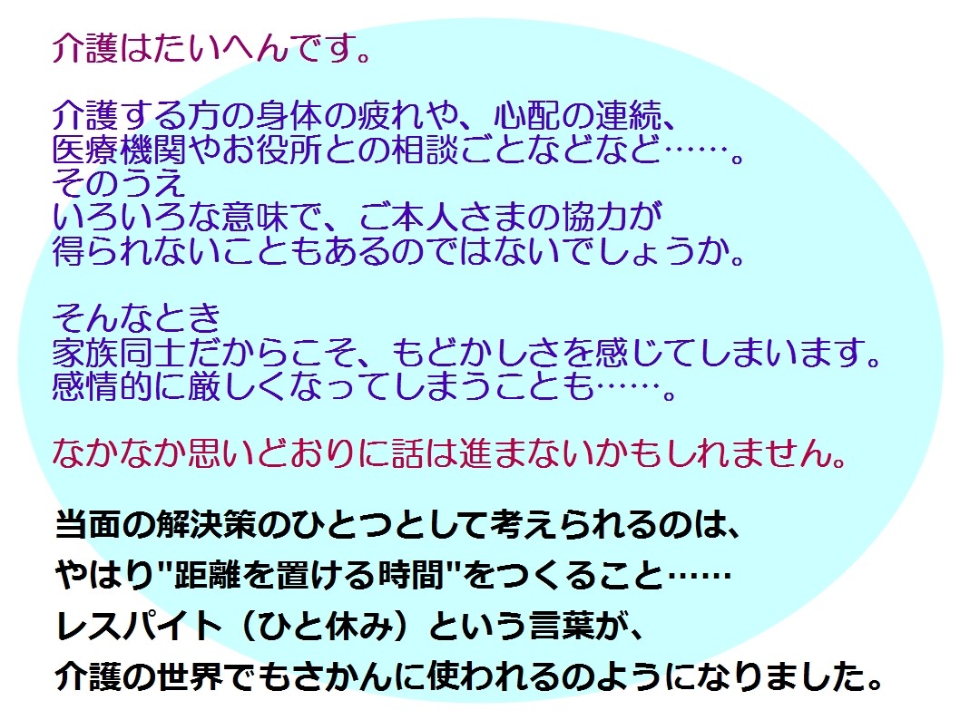 “レスパイト”は、どうだろう? ~家族介護の先に不安を感じるみなさまへ~