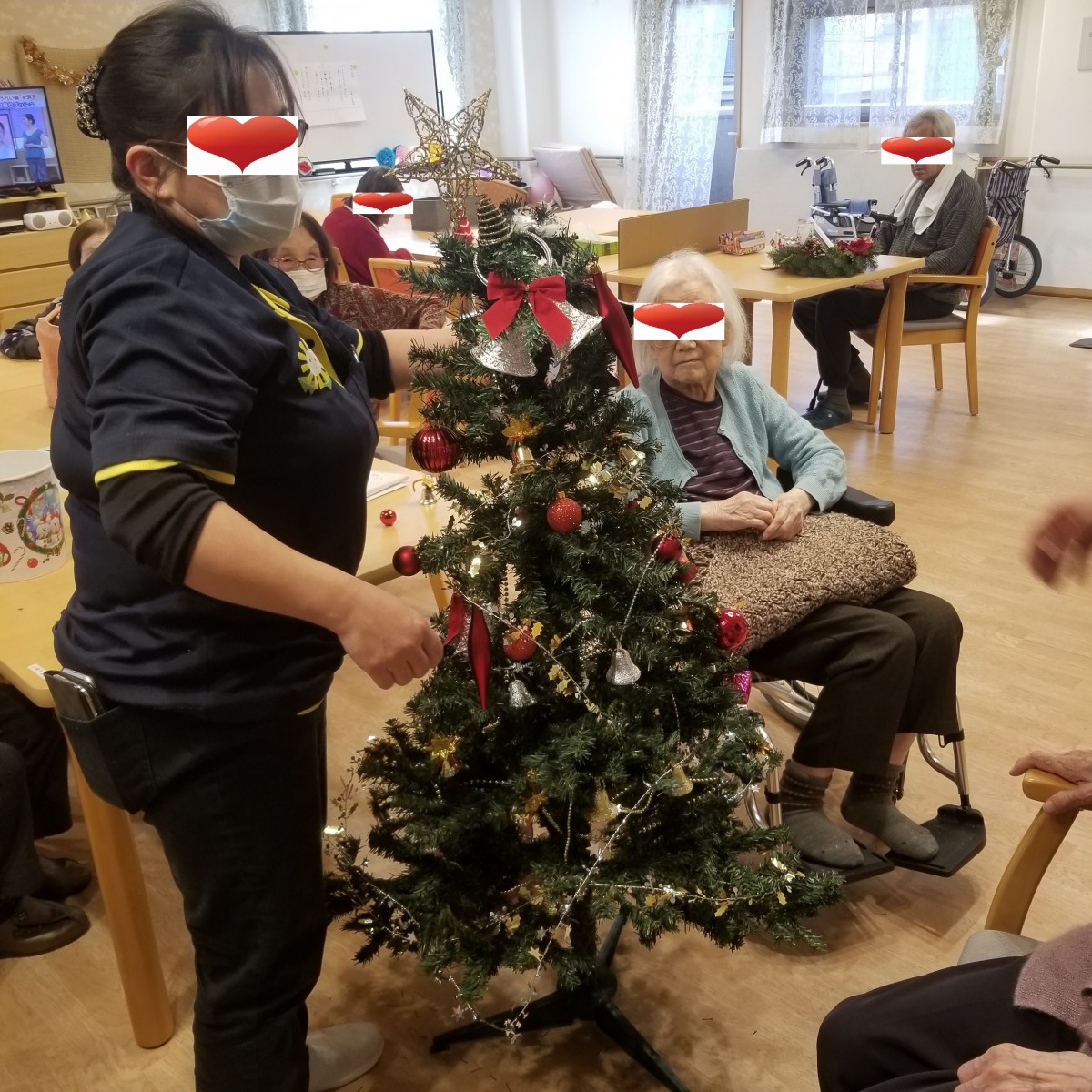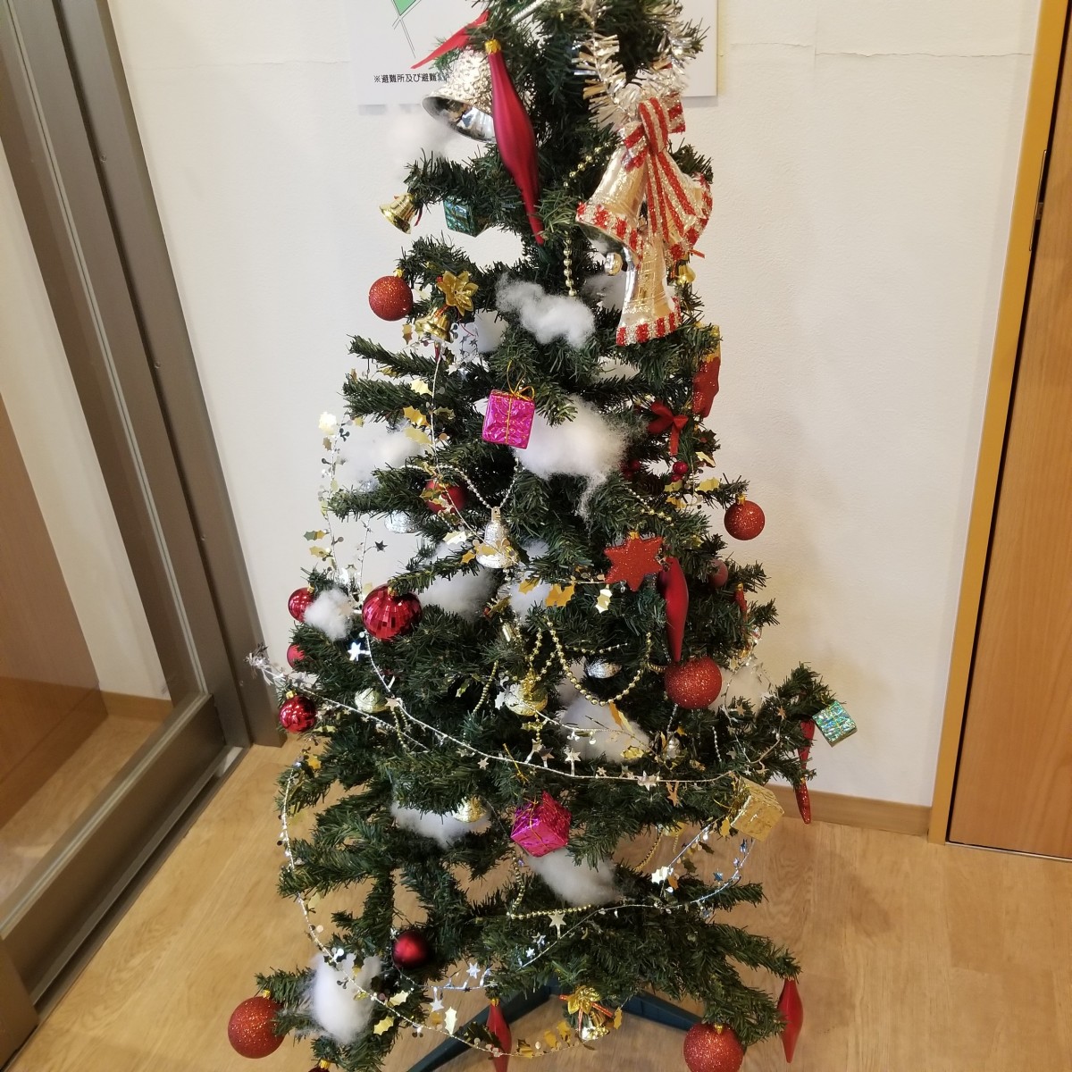 こんにちは。本日はクリスマスツリーを皆さんで飾りました