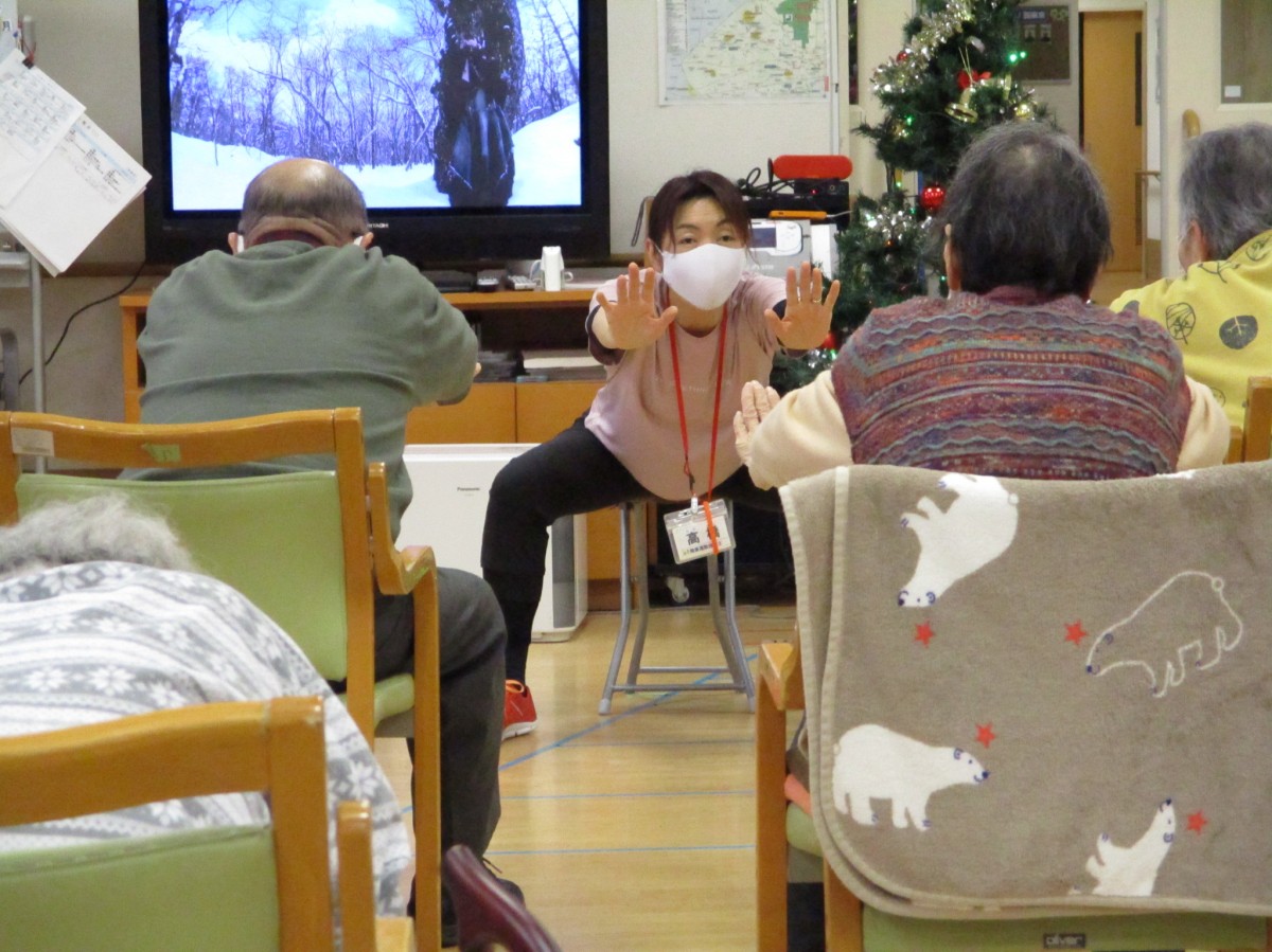 職員も前に出てインストラクターと一緒にNOA体操!