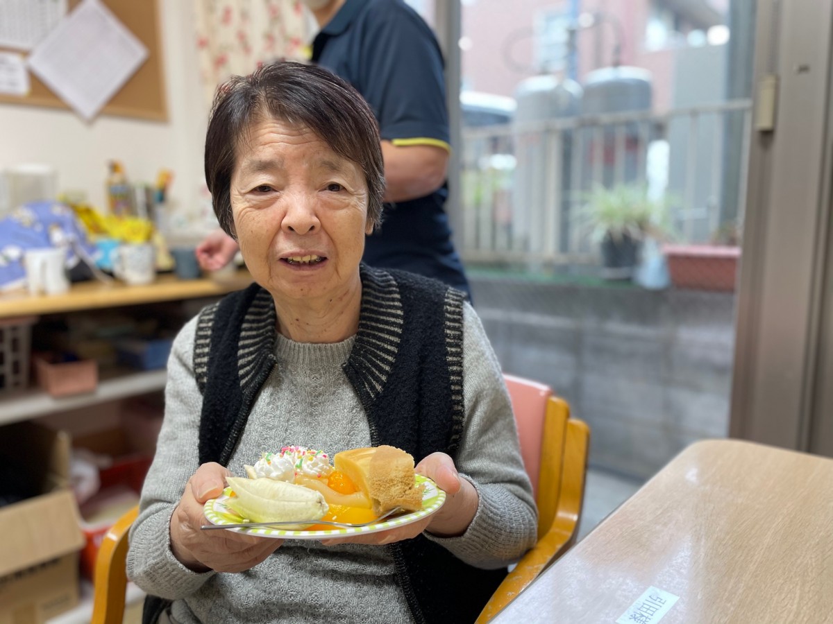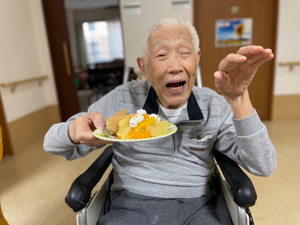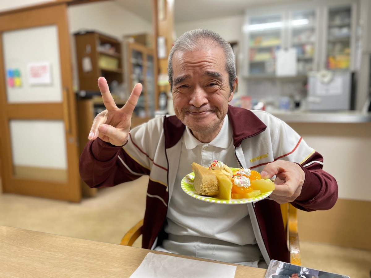 先日に行いました誕生日会で、手作りケーキを食べ大変喜んでくれました!その際のみなさんの満面の笑みです!!