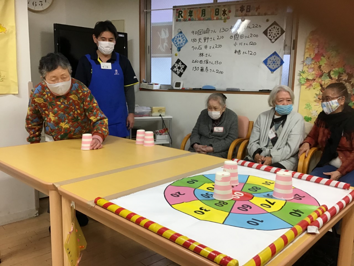 紙コップカーリングをしました。