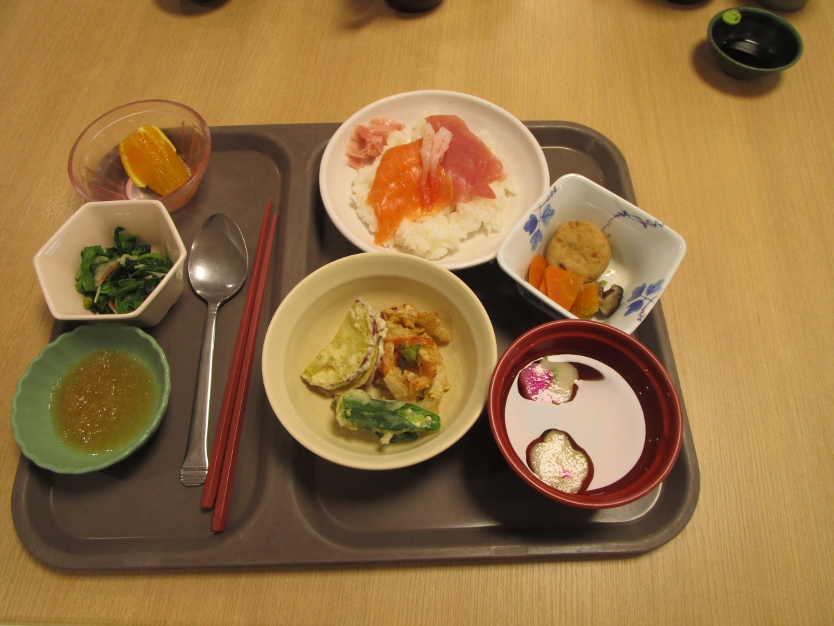誕生日会の昼食は 海鮮チラシに天ぷらなど、皆様に好評いただいているメニューです。