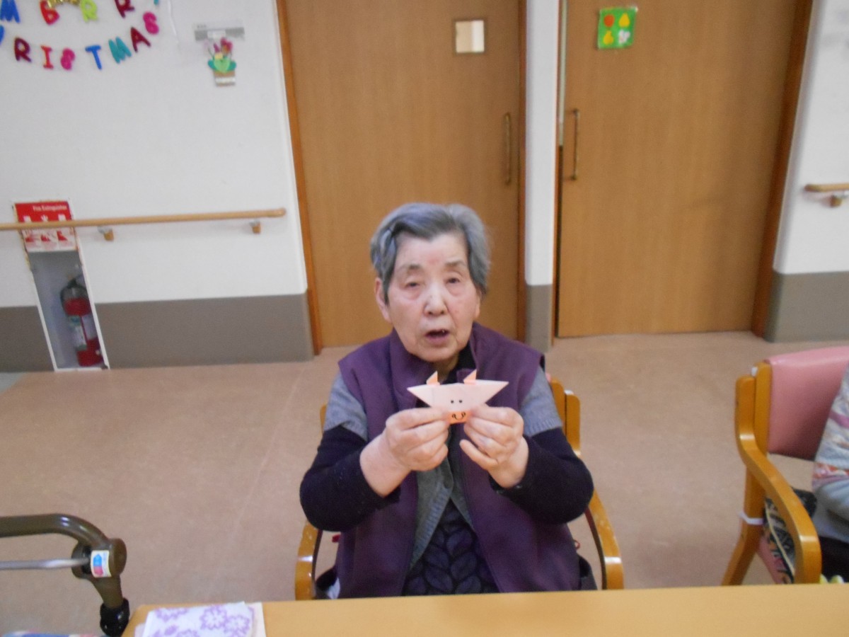 紙で作った花や、来年の干支などを作っていただき、ホームを彩りました。
