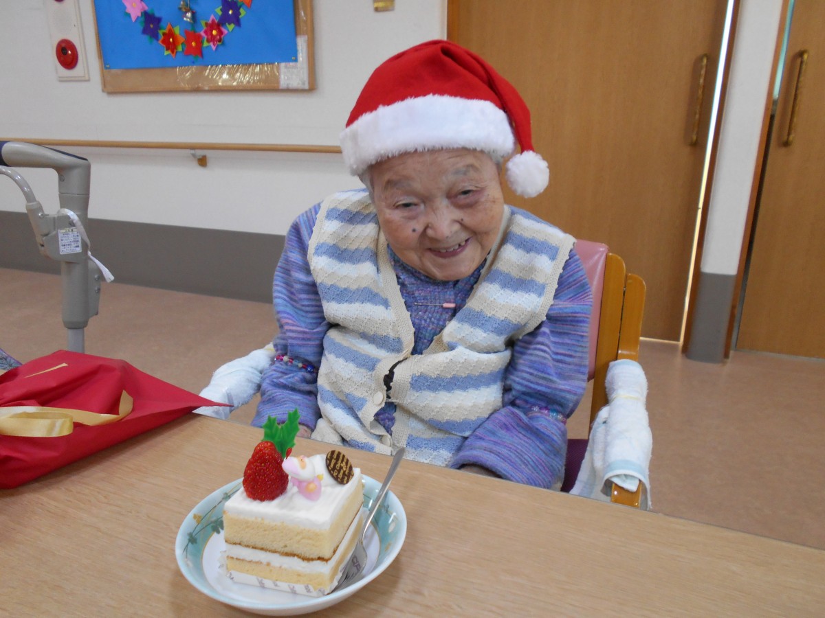 レクレーションを行った後、入居者の皆様にサンタクロースからプレゼントがありました。