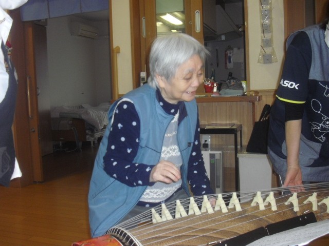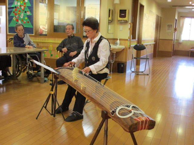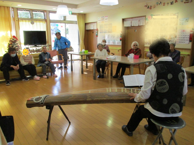 午前の職務を終え、楽器をセット、、、「何始まるの??」とみんなざわつき始めました\(◎o◎)/!お琴演奏会始まりです(*^_^*)