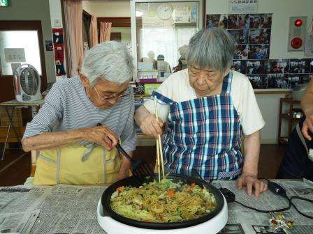 「焼きそば」は野菜切りから始まり、上手に炒めて出来上がり。皆さんで美味しく食べて大満足です。