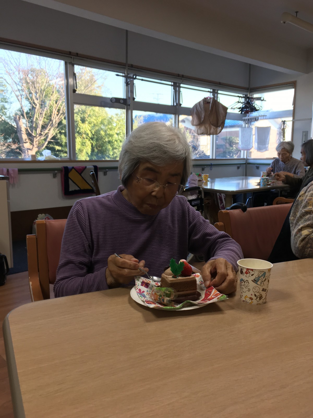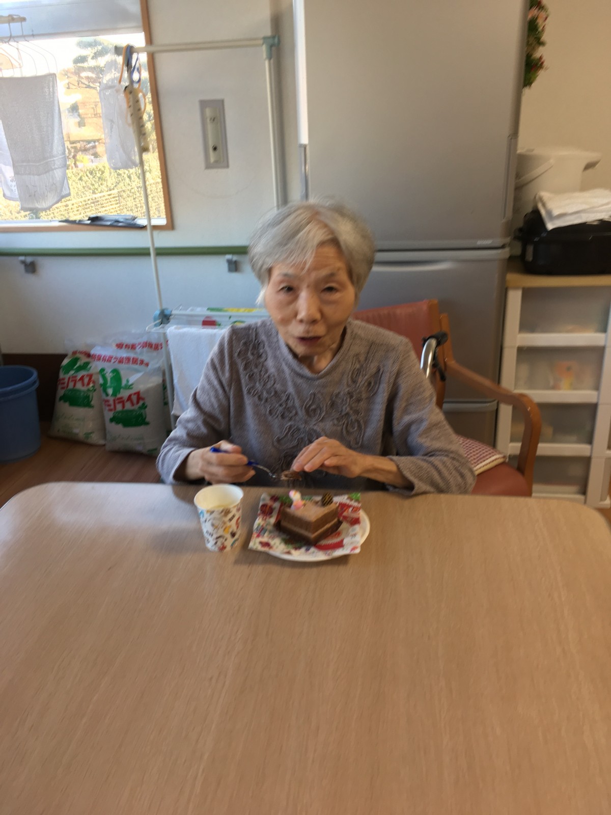 おやつは皆さんのリクエストチョコレートケーキとオレンジジュースです。