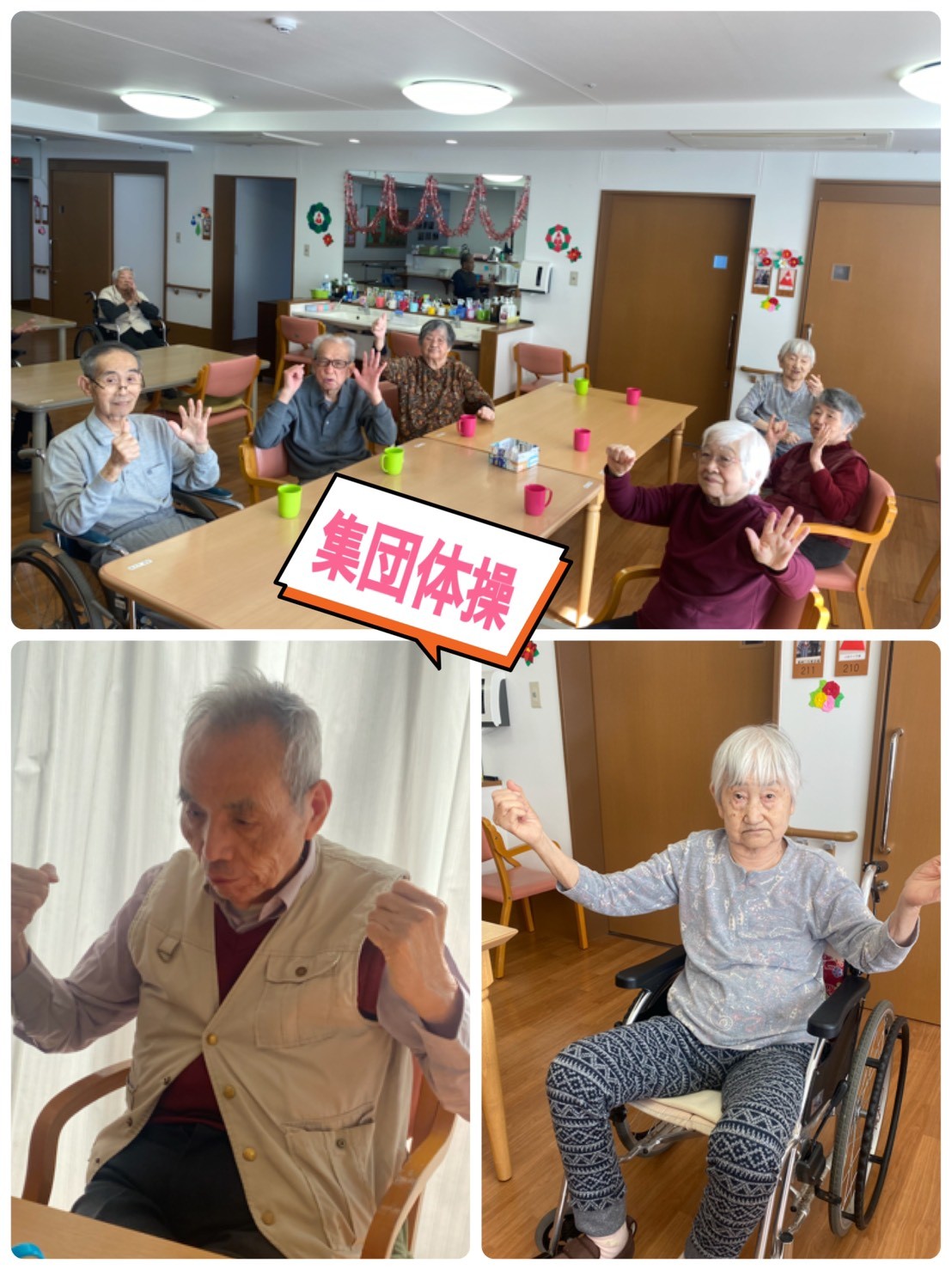 こんにちは。みんなの家・大宮内野本郷のコダマです(^。^) 花の丘公園そば。さいたま市西区。 宮原駅西口よりバス6分&徒歩4分のところにある施設です。 毎日寒いですね。寒いとどうしても体が縮こまってしまったり、身体がガチガチになって肩がこってしまったりと・・・ 少しでも身体を伸ばしてポカポカしていただこうと♡今日も昼食前に『集団体操・口腔体操・早口言葉・音楽体操』を行いました(^。^) 体操がお好きな皆様、大変意欲的に参加してくださいました♬体を動かすのは気持ちがいいですね♡♡♡