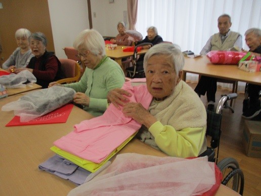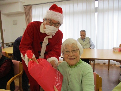 サンタとトナカイ…(サル)の登場に入居者様手を叩いて笑ってる方 手を振ってくださる方沢山いました(^o^) サンタが一人一人にプレゼントを♪