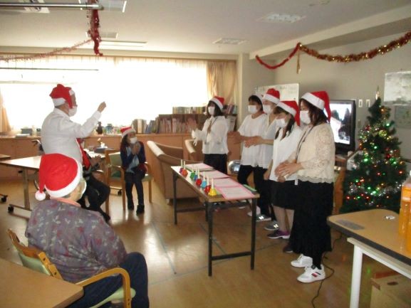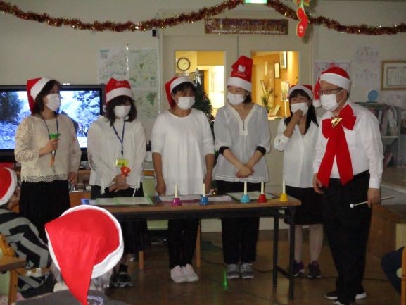 次に職員によるハンドベル演奏やアカペラの合唱も行いました。みんなの笑いが溢れました。