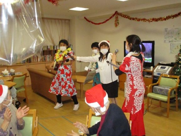 又、職員が個別に『仮装&歌謡ショー』や『手品』を演じました。『ワイワイ』、『ガヤガヤ』