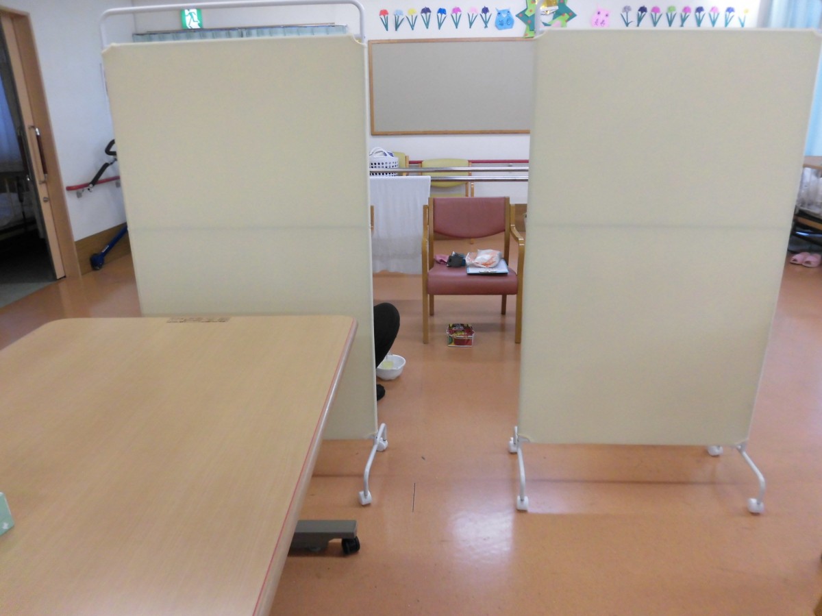 今回は2人対応なので写真の通り、カーテーション2つ使いましてこのような対応を行いました。