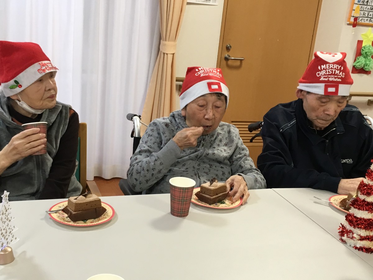 とってもおいしそう!皆さんとても嬉しそうに召し上がっておられました(^^♪とっても盛り上がり素敵なクリスマス会になりました!プレゼントもケーキも喜んでいただけて嬉しかったです!来年はご家族様も一緒に参加できますように!(^^)!