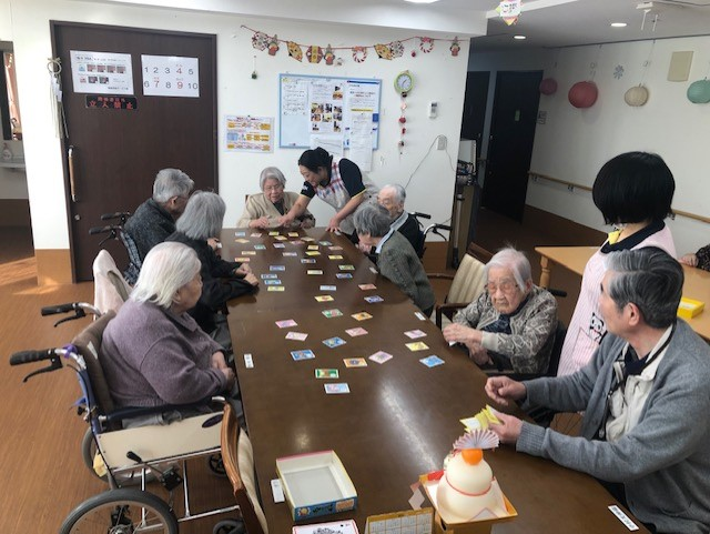 例年ならお正月はたくさんのご家族様がいらっしゃりにぎやかな時期なのですが、今年は新型コロナウイルス対策で「面会の一時停止」となっております。やはりご入居者の皆様は少し寂しそうです。