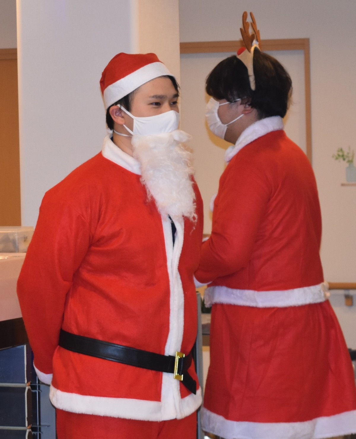 月初めから企画した看護師3名に、「きよしこの夜」と共に聖歌隊が入場、シフトを工面してのケアスタッフも参加しました。