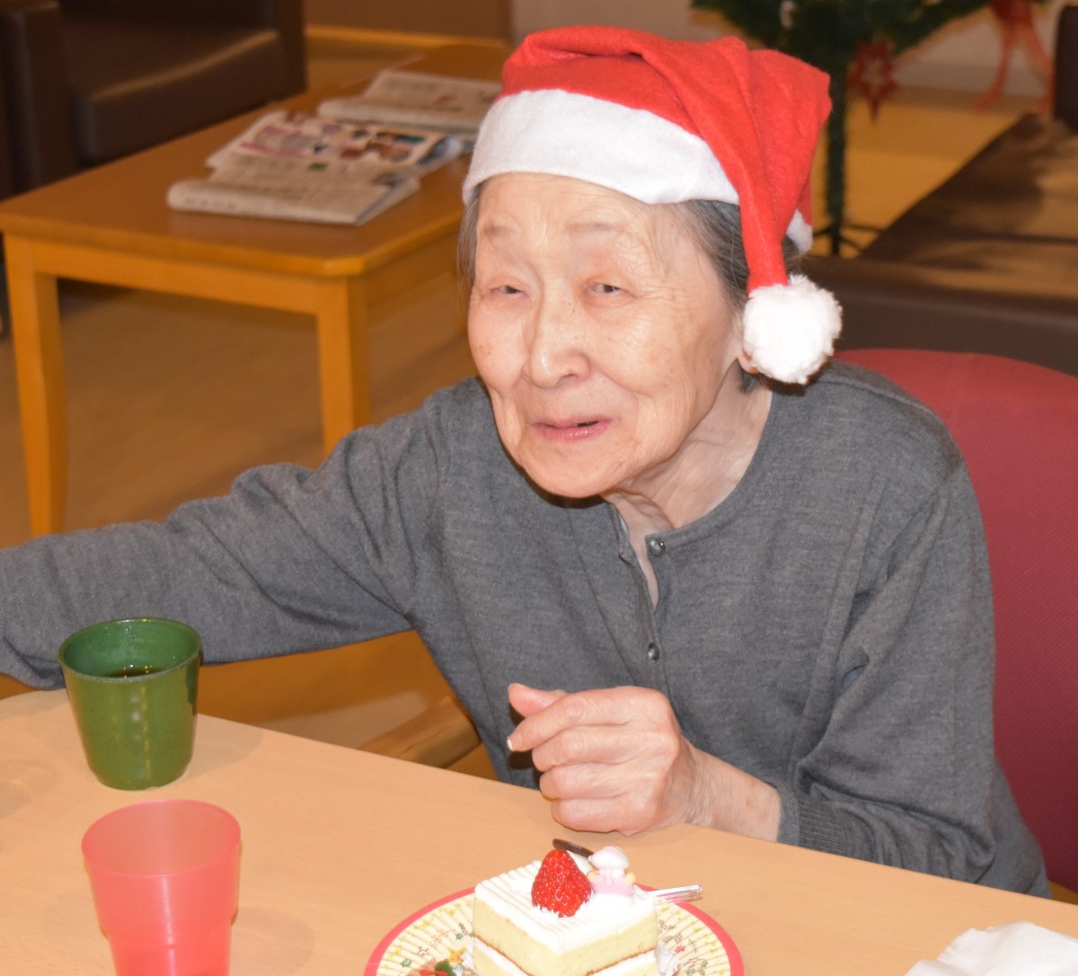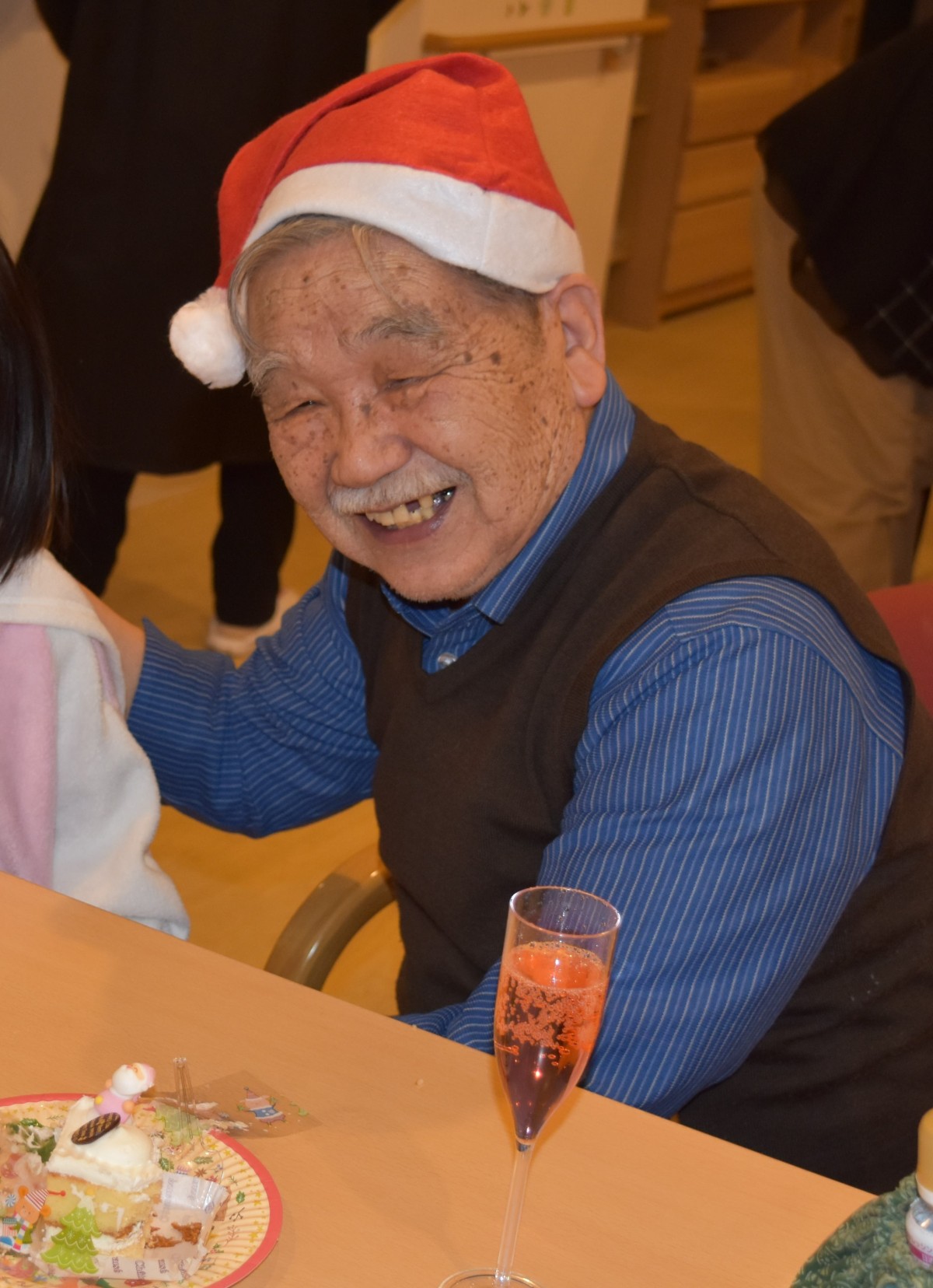 最終日の今夜はご入居者様にもサンタのキャップを被って頂きました。
