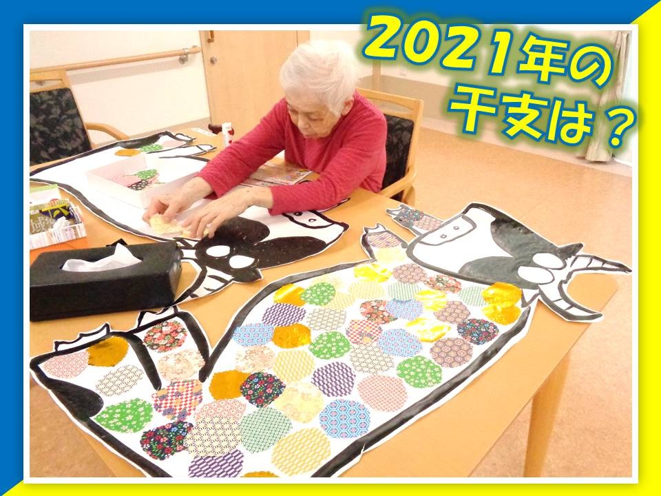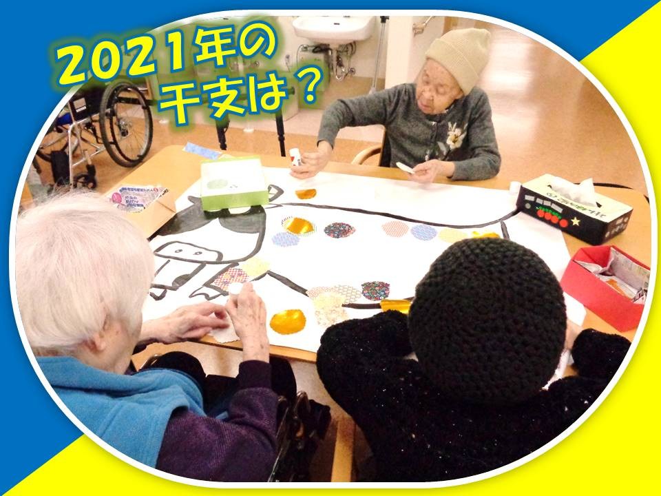 そして壁紙も2021年の干支である、Oxもとい、丑年の牛さんの作成を入居者様にお手伝いして頂きました。