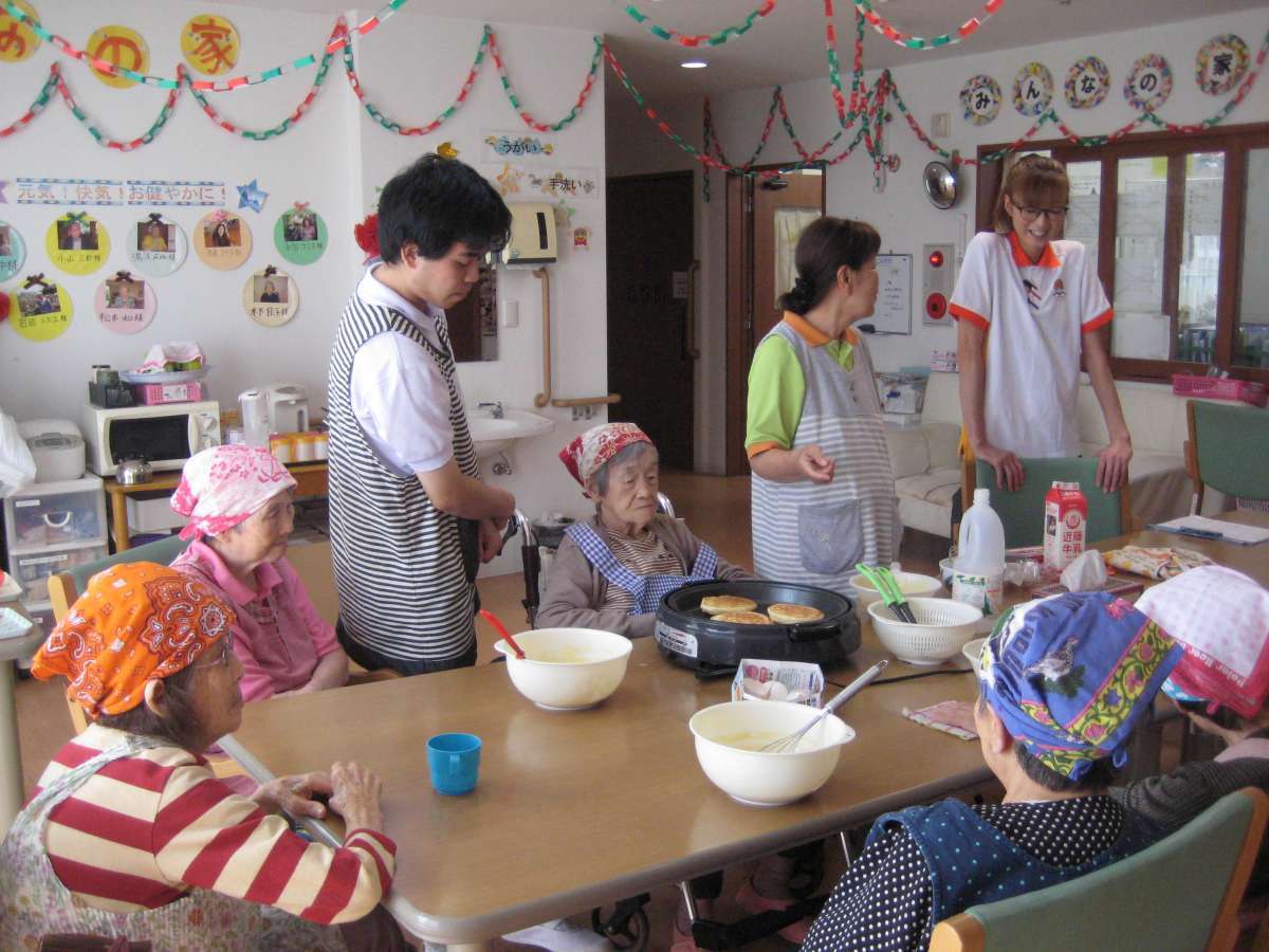 それではご利用者様・ご家族様と一緒にホットケーキ作りをした際の写真をご覧ください!