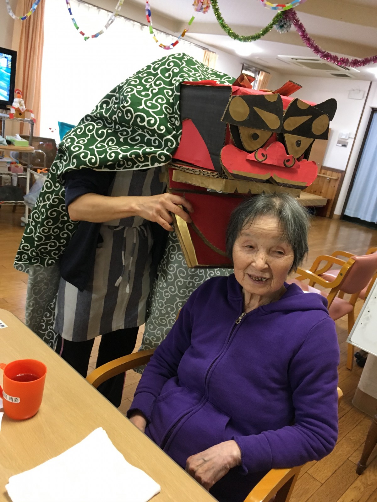 手作りの獅子舞でご入居者様の頭をガブガブとしました(笑)