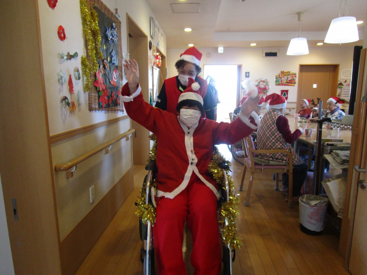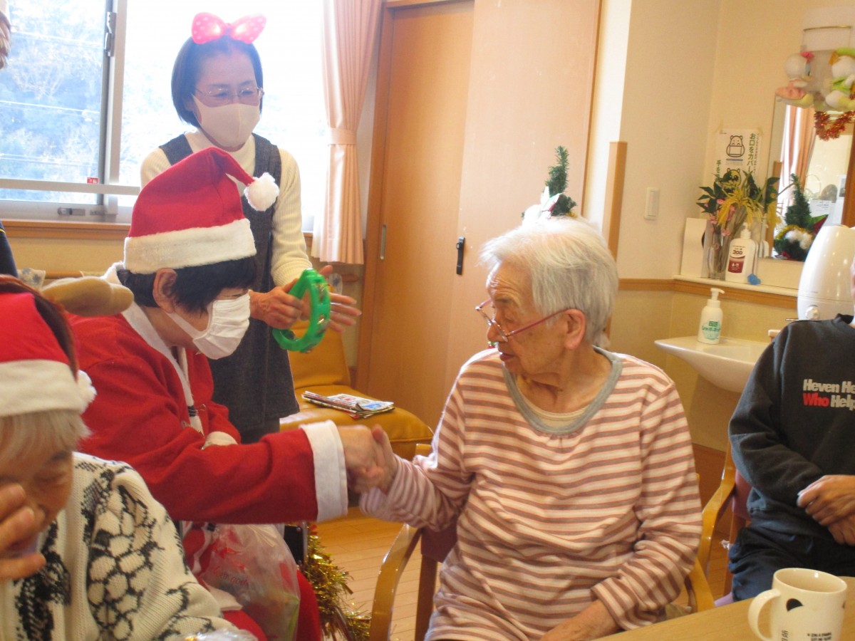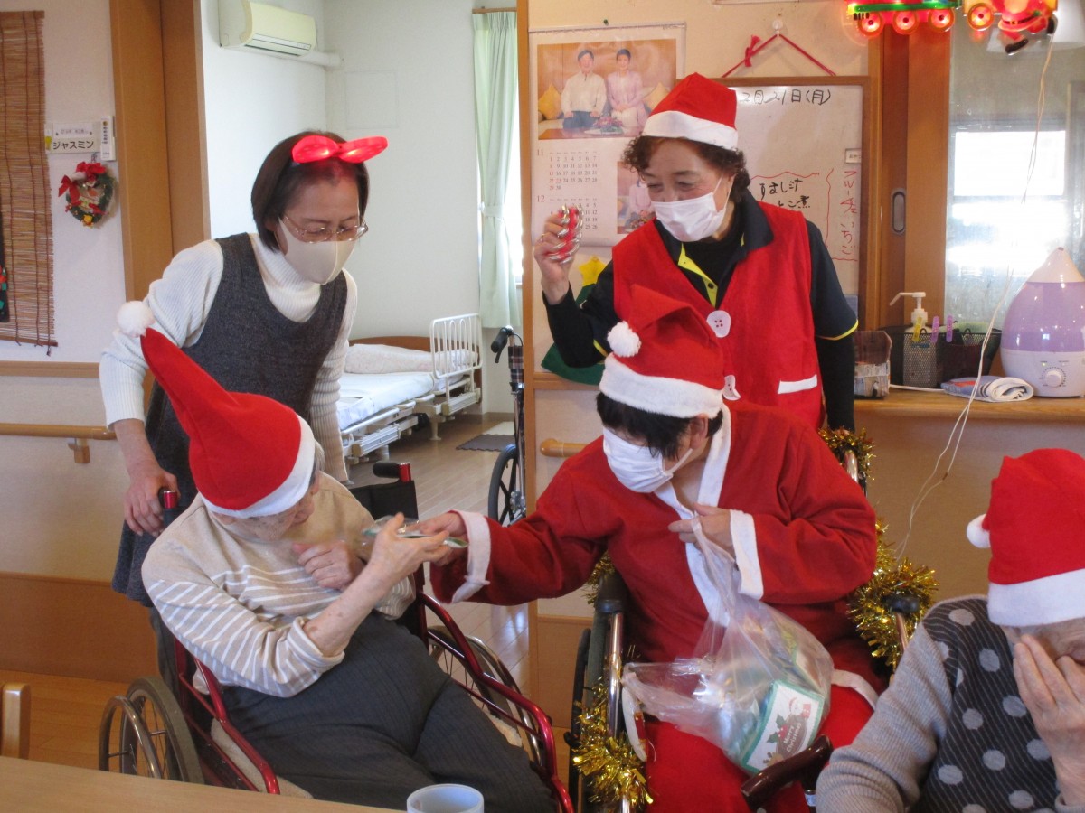 ご利用者様に1人ずつ声をかけながらクリスマスプレゼントを手渡しすると、皆様パァーッと嬉しそうな顔で「ありがとう(^^)」と喜んで下さいました♪