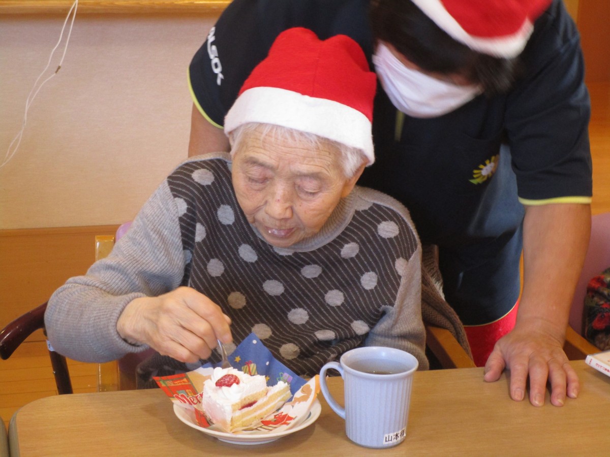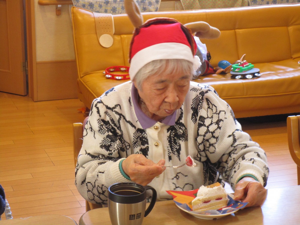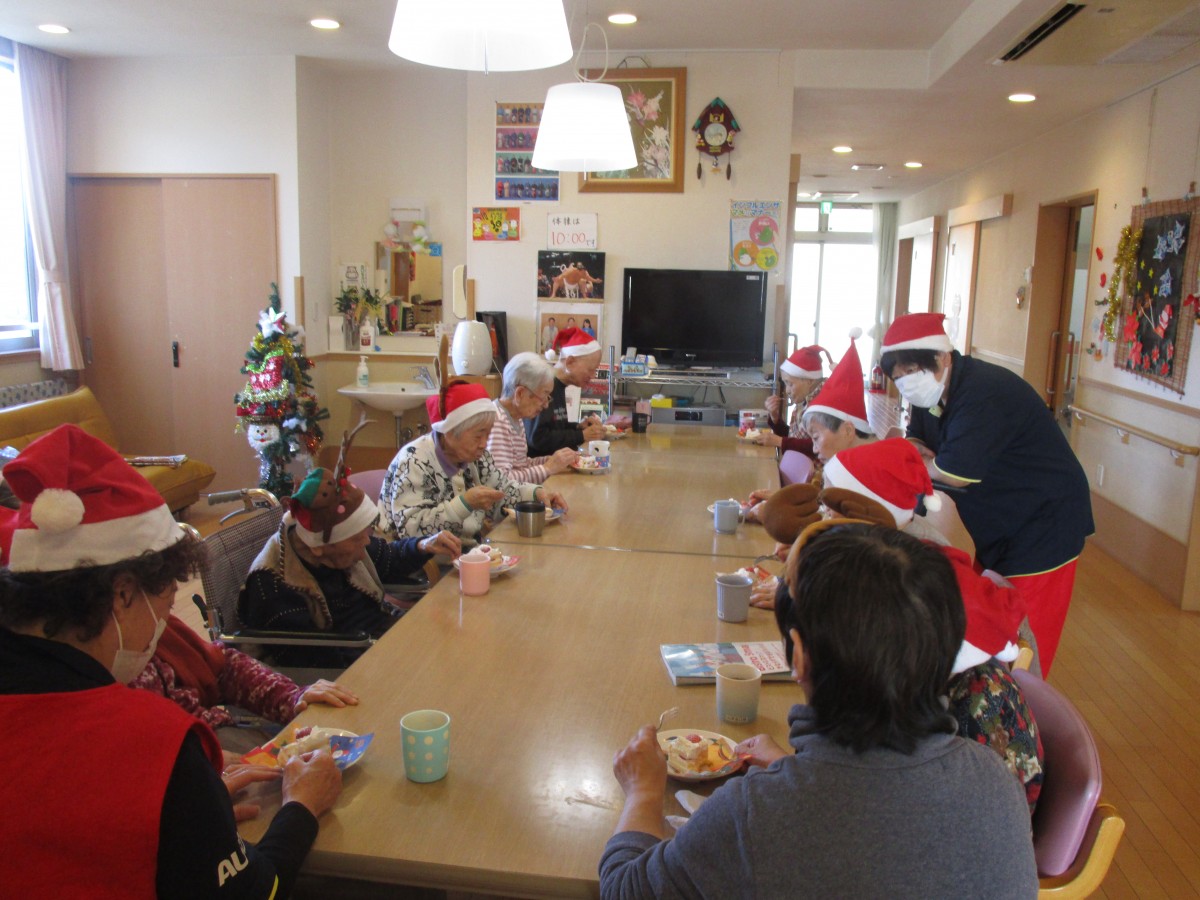 ご利用者様に1人ずつ声をかけながらクリスマスプレゼントを手渡しすると、皆様パァーッと嬉しそうな顔で「ありがとう(^^)」と喜んで下さいました♪