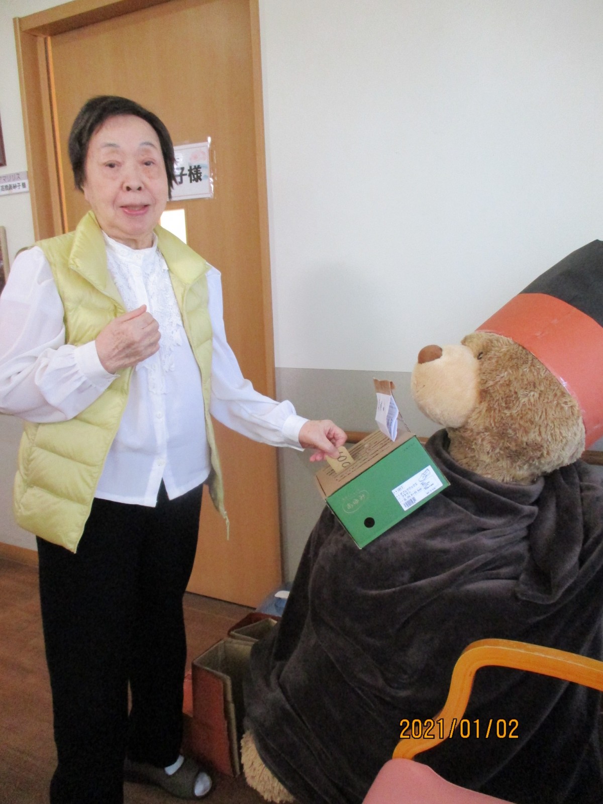 今回は外に初詣行けない分、施設の中でお賽銭箱にお金を入れて