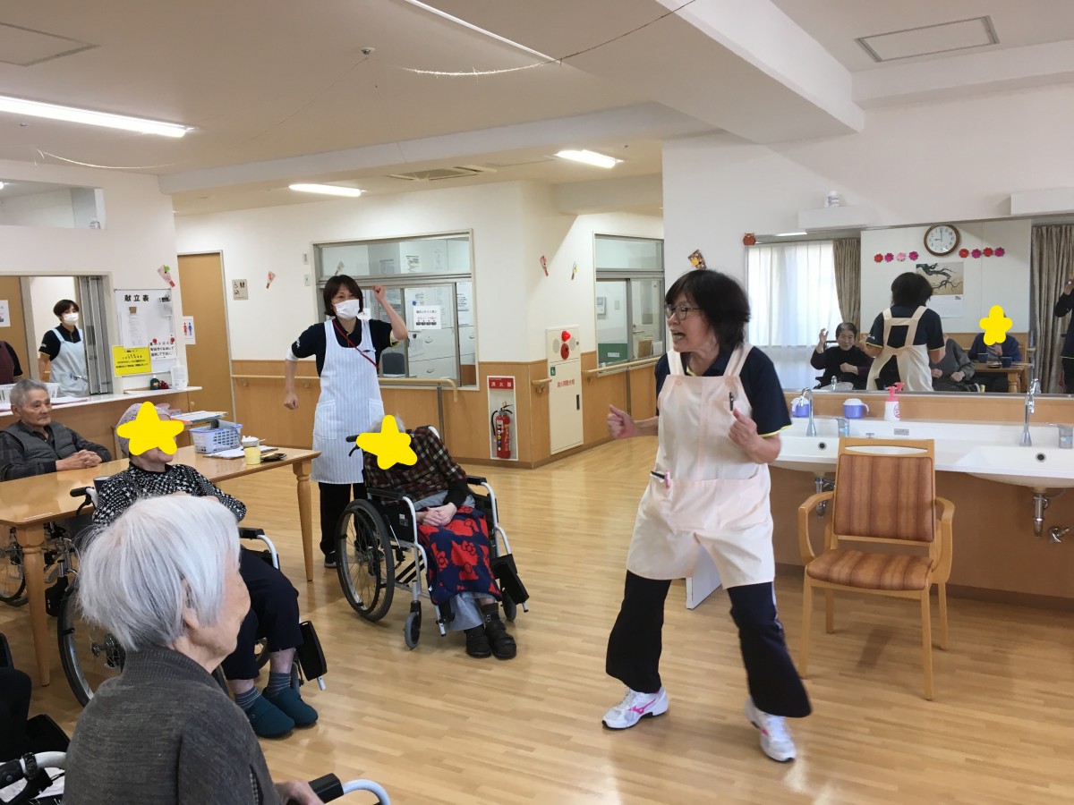 元気に体操している職員さんも