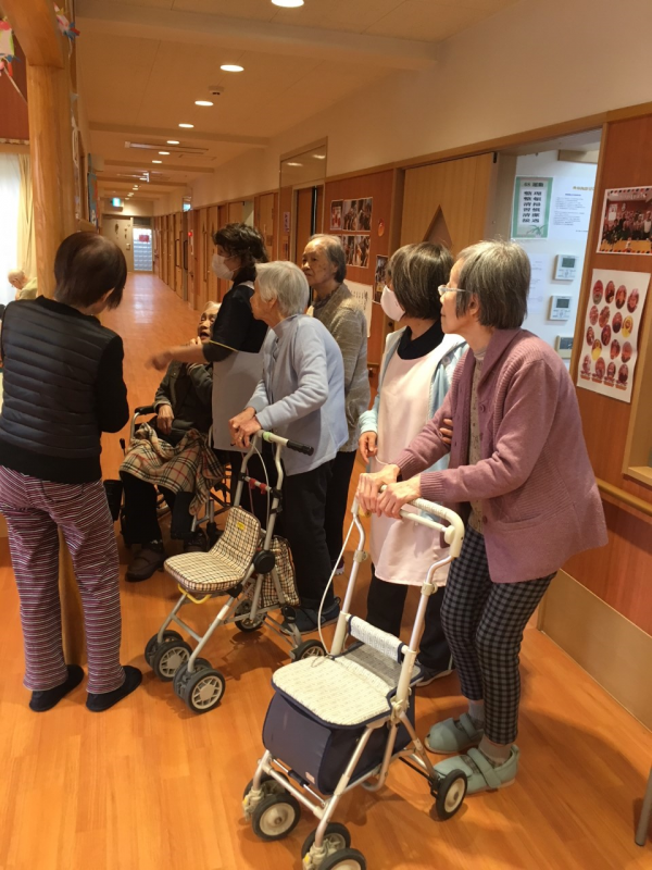 今回は、1階のご利用者が2階に訪問し2階の方とお話をされているご様子!