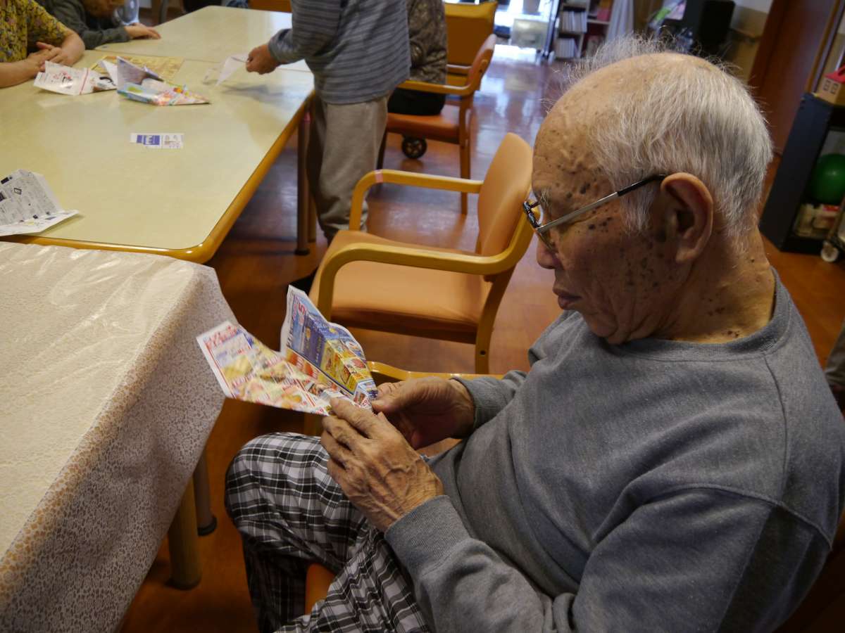 先日、チラシで箱作りをされていた ご入居者様が、
