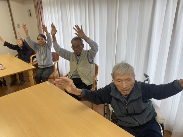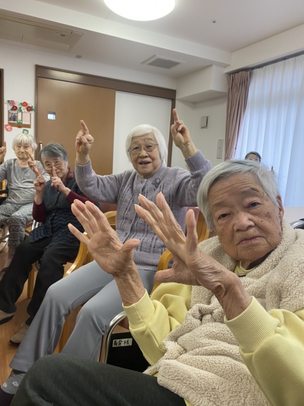 普段なかなかお会い出来ない『三橋4丁目・6丁目・与野公園・新都心』の入居者様方々と♡画面上で一緒に体操しましたよ♬ 『こんにちは〜!与野公園て薔薇が有名だよね。新都心て都会〜☆』など、盛り上がりました♪沢山の笑顔が見られましたよ♡ 沢山脳と体を動かしてポカポカになりましたね(^。^)