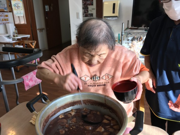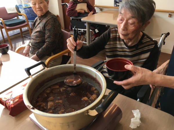 前日から小豆をコトコト煮詰めて、お餅の替わりに“お麩”を…