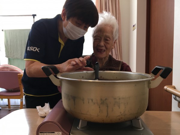 交代ずつクルクル混ぜて、ご自分の食べる分を入れました。