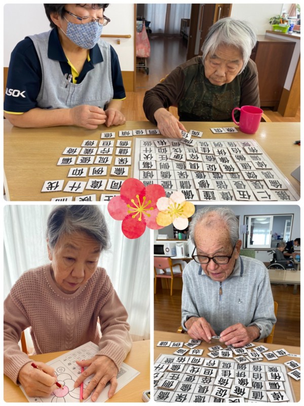 『生姜はあったまるね〜♬』『お洒落なとんかつだね』など大好評でした(^。^) 漢字パズルや塗り絵にも取り組まれていました。