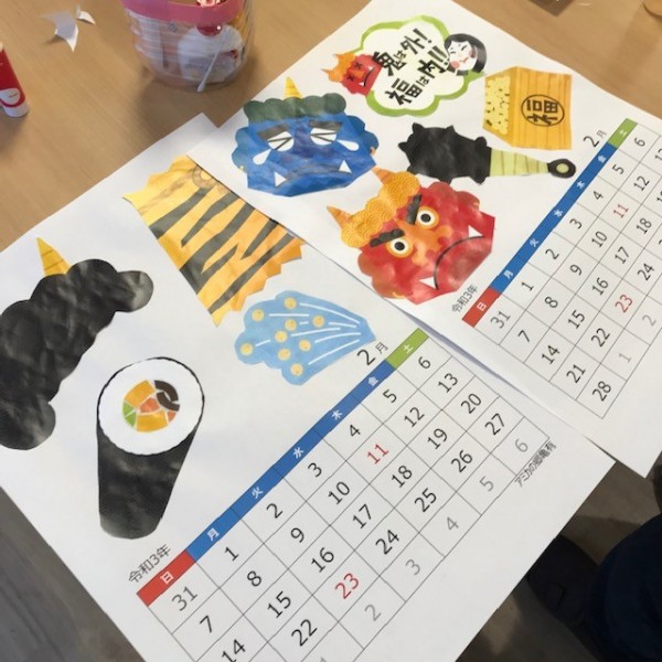 今日は3階の方と2月のカレンダー制作をいたしました☆☆
