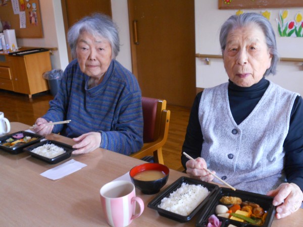 2階のご利用者様は、職員が「今日の食事はお弁当になりま~す。」